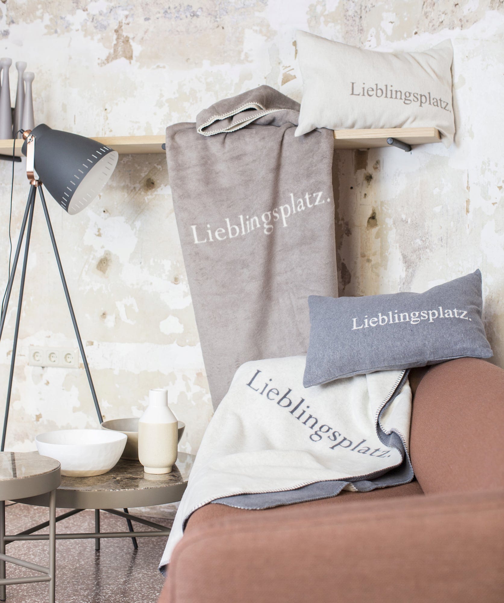 Puszysty, miękki i przyjemnie ciepły - przepiękny żakardowy koc wykonany z milutkiego weluru z dużą zawartością bawełny sprawia, że relaks na kanapie jest naprawdę komfortowy. Zimne stopy nie mają szans - dobre samopoczucie jest na porządku dziennym. Dzięki temu kocowi w ciepłych kolorach i napisem „Lieblingsplatz (ulubione miejsce)” nazwa szybko staje się programem. Absolutny must-have w Twoim salonie!