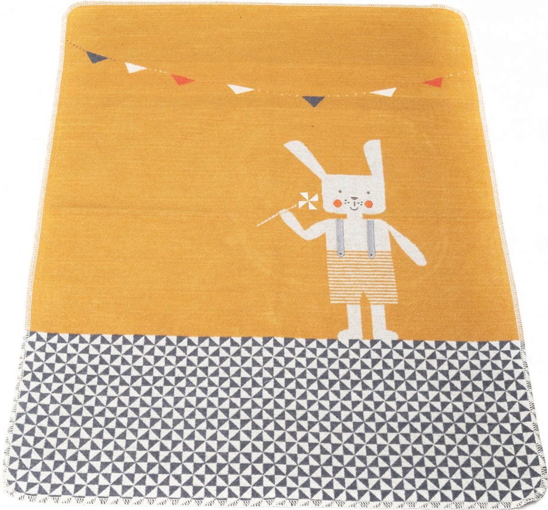 David Fussenegger Kocyk dziecięcy JUWEL z haftem - króliczek, złoty żółty