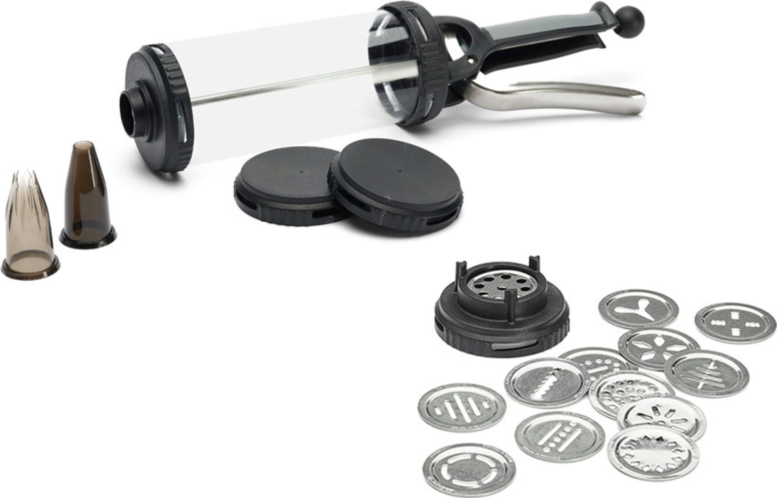 Dzięki temu można z łatwością napełniać, dekorować i ozdabiać, nawet gęste kremy, ciasta parzone i musy nie stanowią wyzwania dla Le Tube. Ten zestaw zawiera również specjalny zestaw montażowy składający się z 13 wymiennych dysków ze stali nierdzewnej, za pomocą których można kształtować szeroką gamę ciastek - pieczenie nigdy nie było tak łatwe!