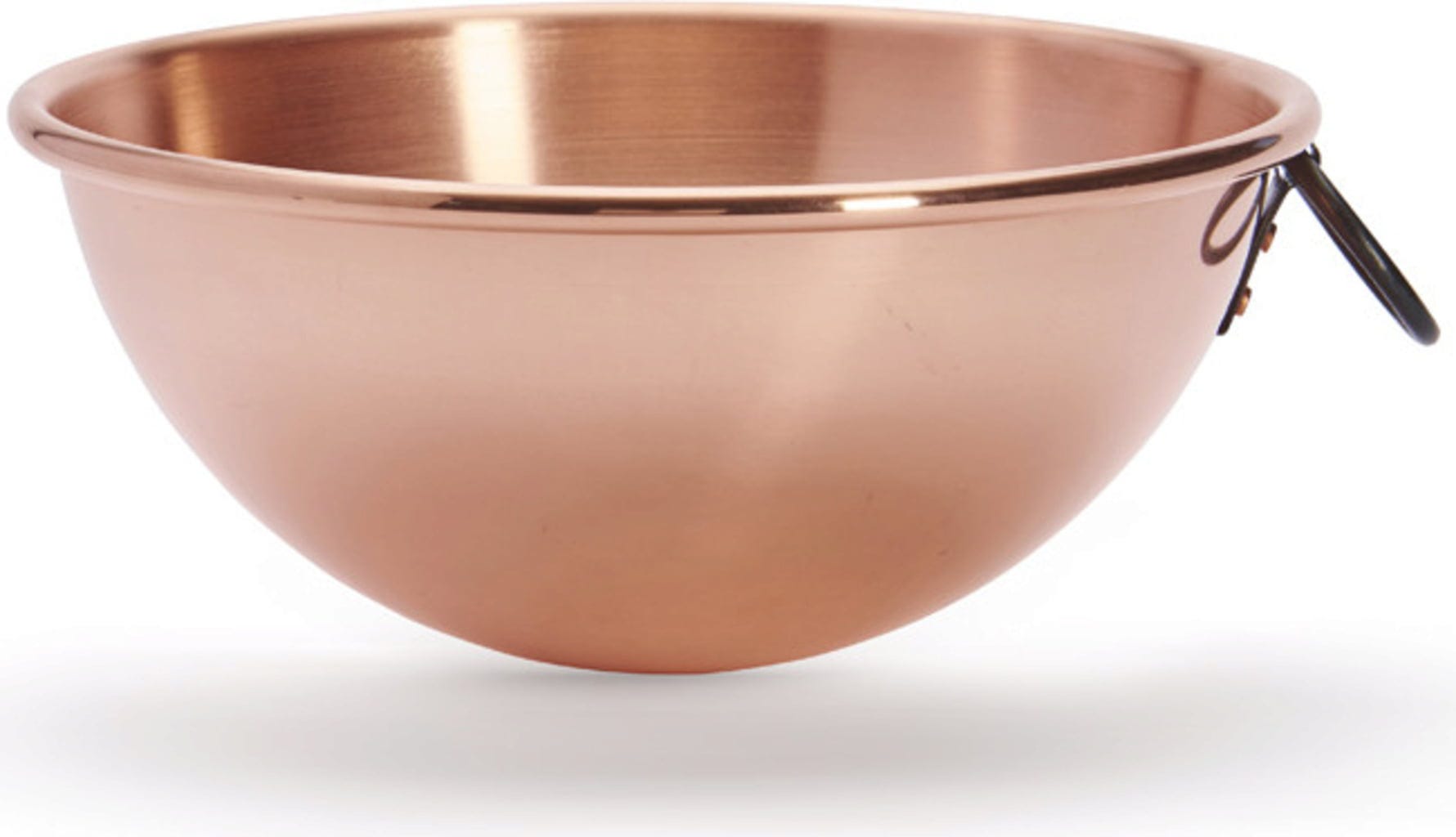 Dzięki tej solidnej miedzianej misce do ubijania możesz wprowadzić do swojej kuchni tradycyjne profesjonalne narzędzie, które pomoże Ci osiągnąć doskonałe rezultaty! Specjalny półkulisty kształt idealnie nadaje się do poziomego ubijania dużej ilości powietrza pod ubitymi białkami, dzięki czemu mają one cudowną objętość i nic nie wylewa się poza krawędź.