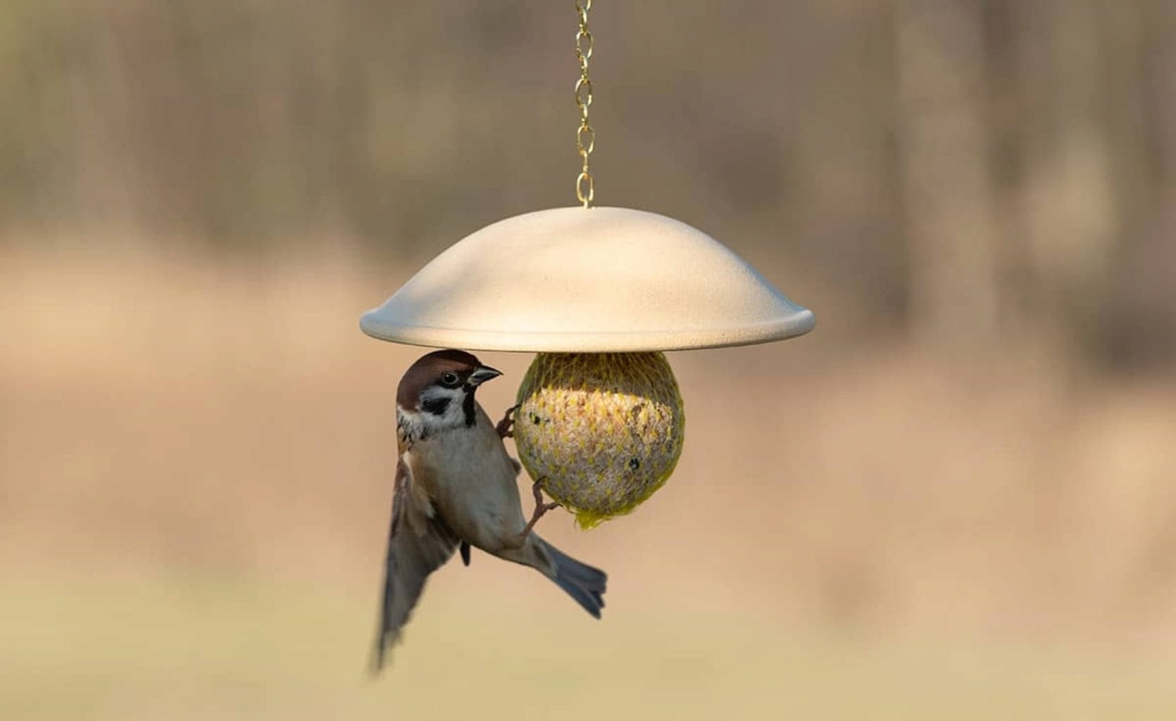 Dach karmnika wykonany z wysokiej jakości ceramiki CeraNatur® oferuje licznym ptakom, takim jak zięby, sikorki i rudziki, zachęcające miejsce do żerowania, w którym mogą bezpiecznie ucztować. Daszek utrzymuje opady z dala, zapewniając suchość i zapobiegając rozwojowi pleśni. Dach karmnika jest również bardzo dekoracyjny i pozwala obserwować pierzastych gości podczas jedzenia.