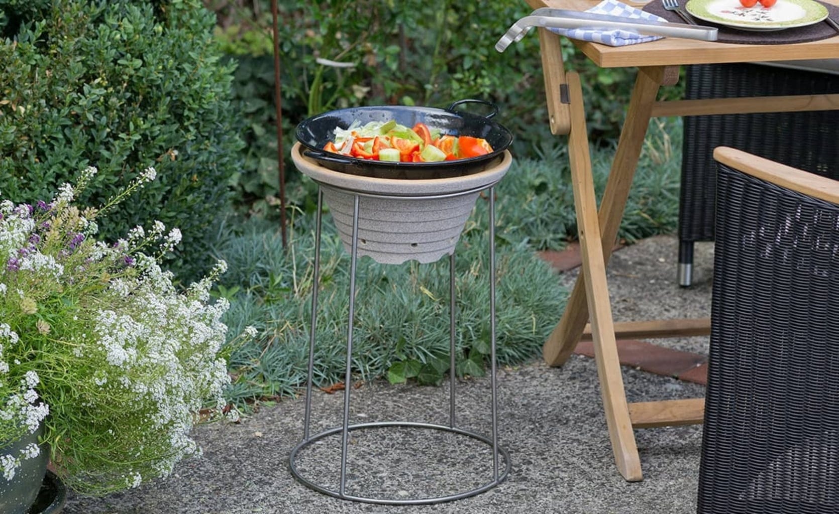 - Bezpieczny stojak i oszczędność miejsca podczas grillowania przy stole