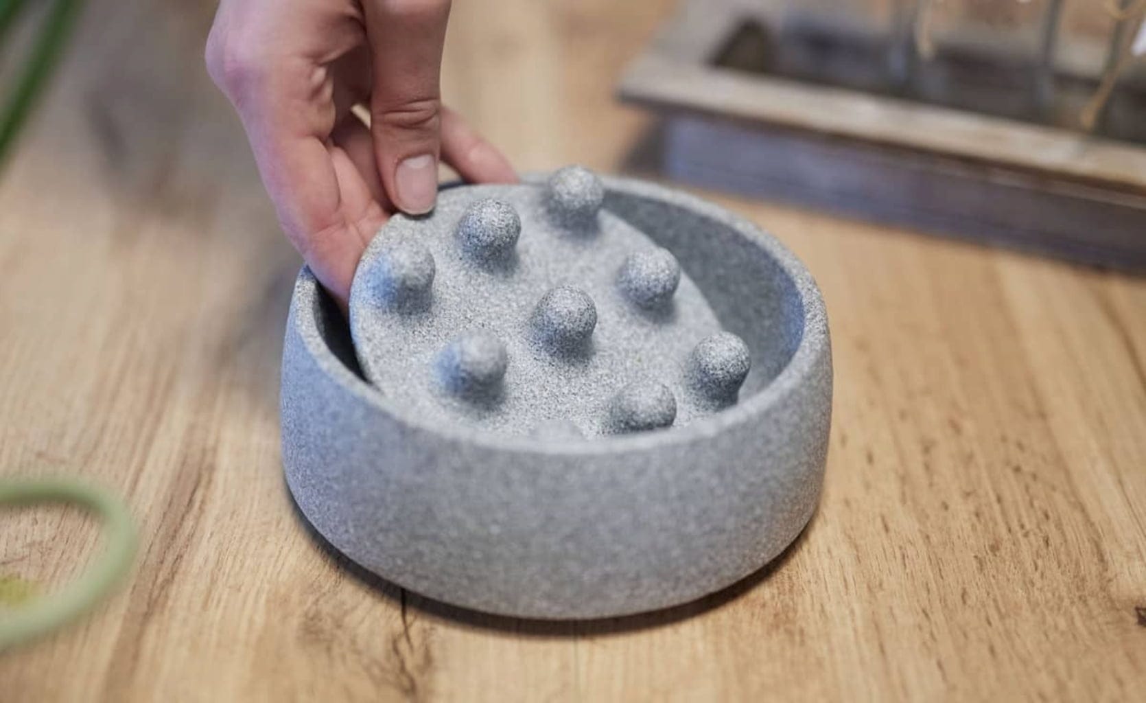 Idealny dodatek do miski Granicium® dla psów. Wkładka, składająca się z ceramicznej płytki z pokrętłami, jest umieszczana luźno w misce, dzięki czemu pies jest spowolniony podczas jedzenia i nie może jeść zbyt łapczywie. Może również czyścić język na ceramice.