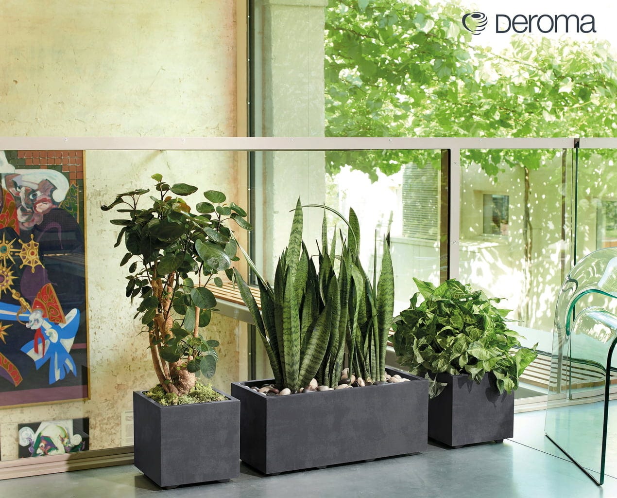 Deroma Skrzynka na kwiaty "Millennium" 59 cm ze zbiornikiem na wodę - piaskowiec, antracyt