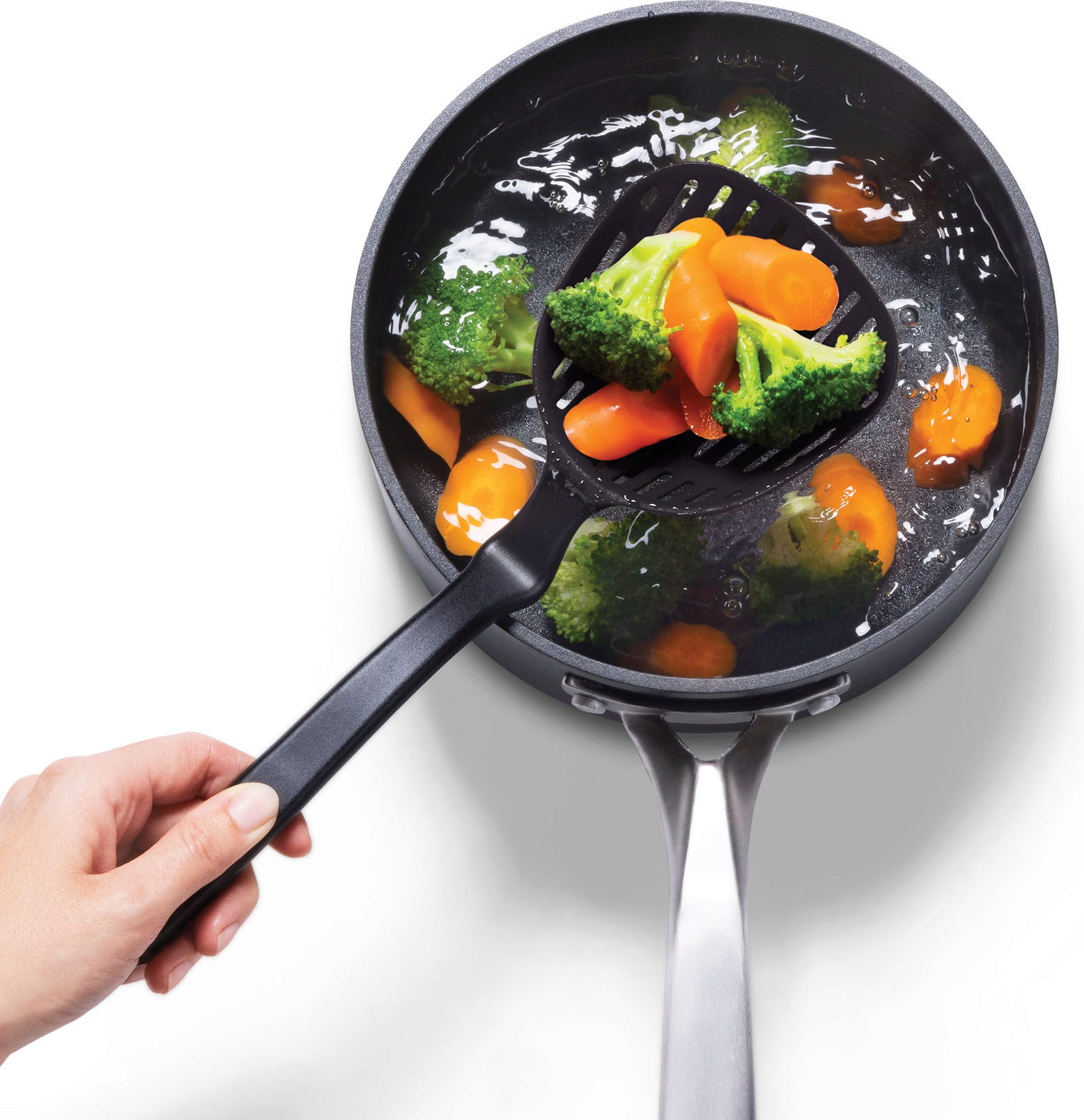 Od teraz nieestetyczne kałuże na blacie kuchennym to już przeszłość, gdy wyciągasz makaron, warzywa lub gnocchi z garnka! Chochla Lestrain od Dreamfarm to sprytne połączenie dużej łyżki do odcedzania i łyżki kuchennej, wyposażonej w zintegrowaną tackę ociekową, która bezpiecznie zbiera nadmiar płynu.