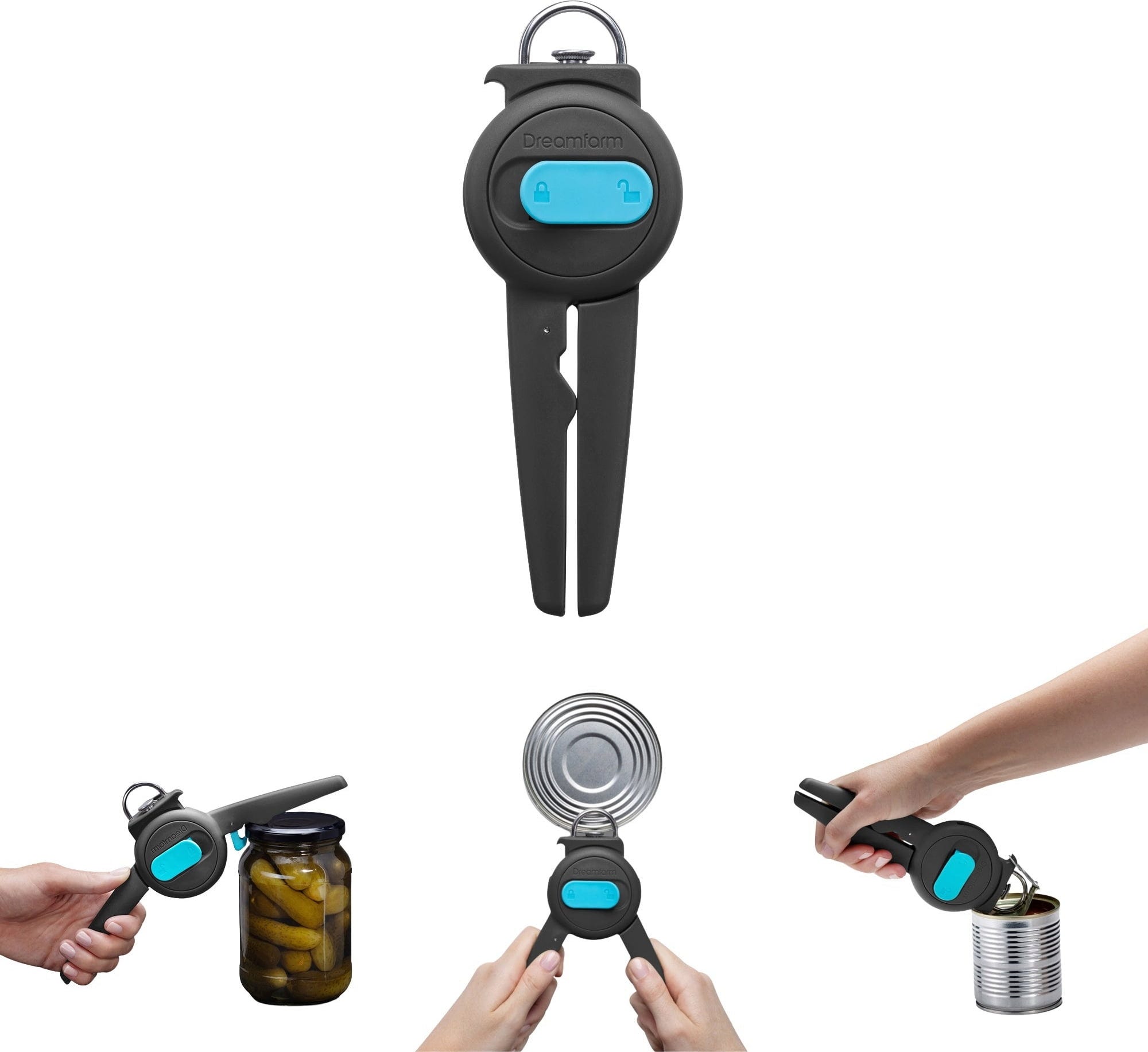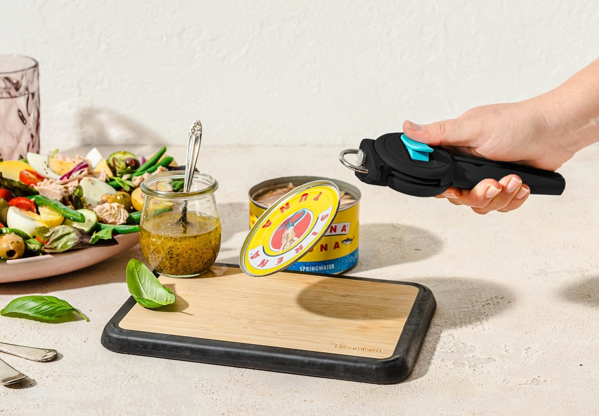 Otwieracz do puszek Dopener firmy Dreamfarm to innowacyjny otwieracz do puszek 3 w 1, który działa niemal automatycznie po ściśnięciu uchwytów! Kółko z hartowanej stali nierdzewnej tnie tak precyzyjnie, że nie ma ostrych krawędzi, a zintegrowany magnes zapewnia higieniczne zdejmowanie pokrywki bez dotykania jej po otwarciu.