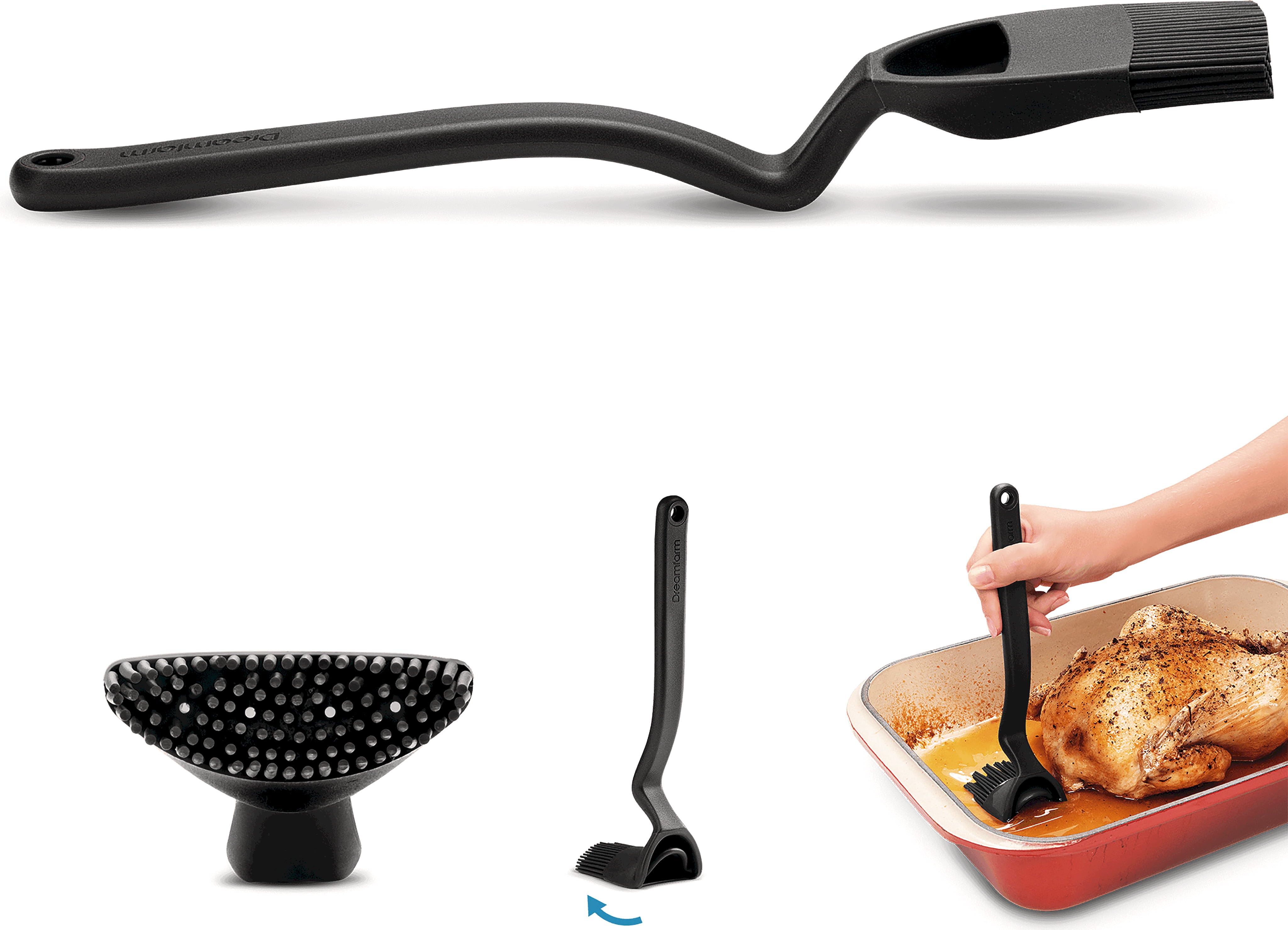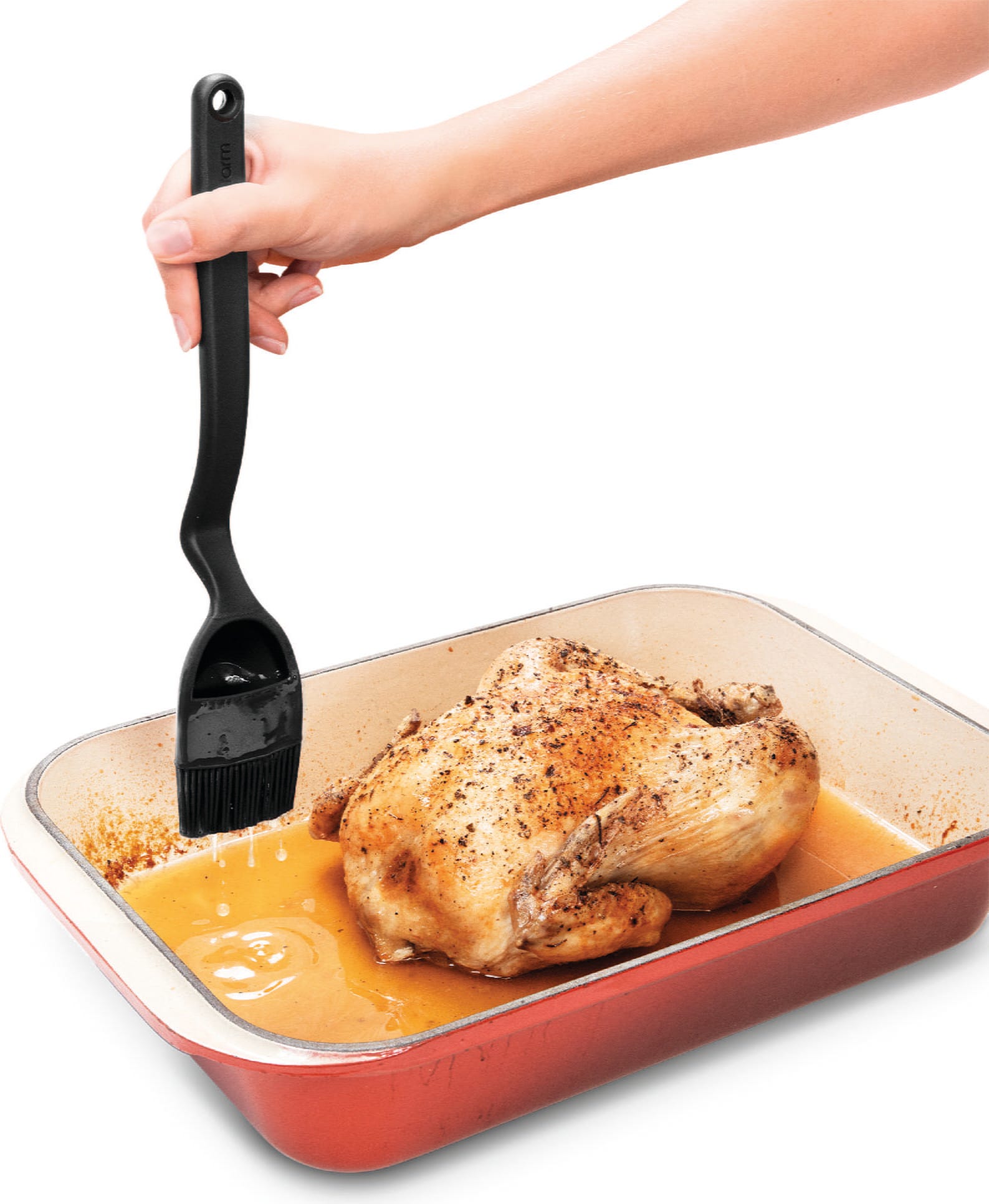 Pędzelek Brizzle od Dreamfarm to niezwykle elastyczny silikonowy pędzel, który potrafi znacznie więcej niż konwencjonalne modele. Dzięki unikalnej konstrukcji, bez wysiłku zbiera resztki sosu z patelni lub tacek i elegancko wygina się podczas smażenia, aby precyzyjnie rozprowadzać płyny.
