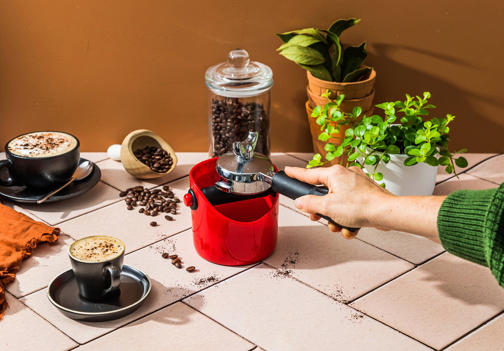 Dzięki pokrytemu silikonem drążkowi, hałas jest tłumiony, a sprzęt jest chroniony, podczas gdy antypoślizgowa podstawa zapewnia, że wszystko pozostaje bezpiecznie na swoim miejscu. Wyjmowaną część wewnętrzną można wyczyścić w mgnieniu oka, dzięki czemu masz więcej czasu na doskonałe espresso.