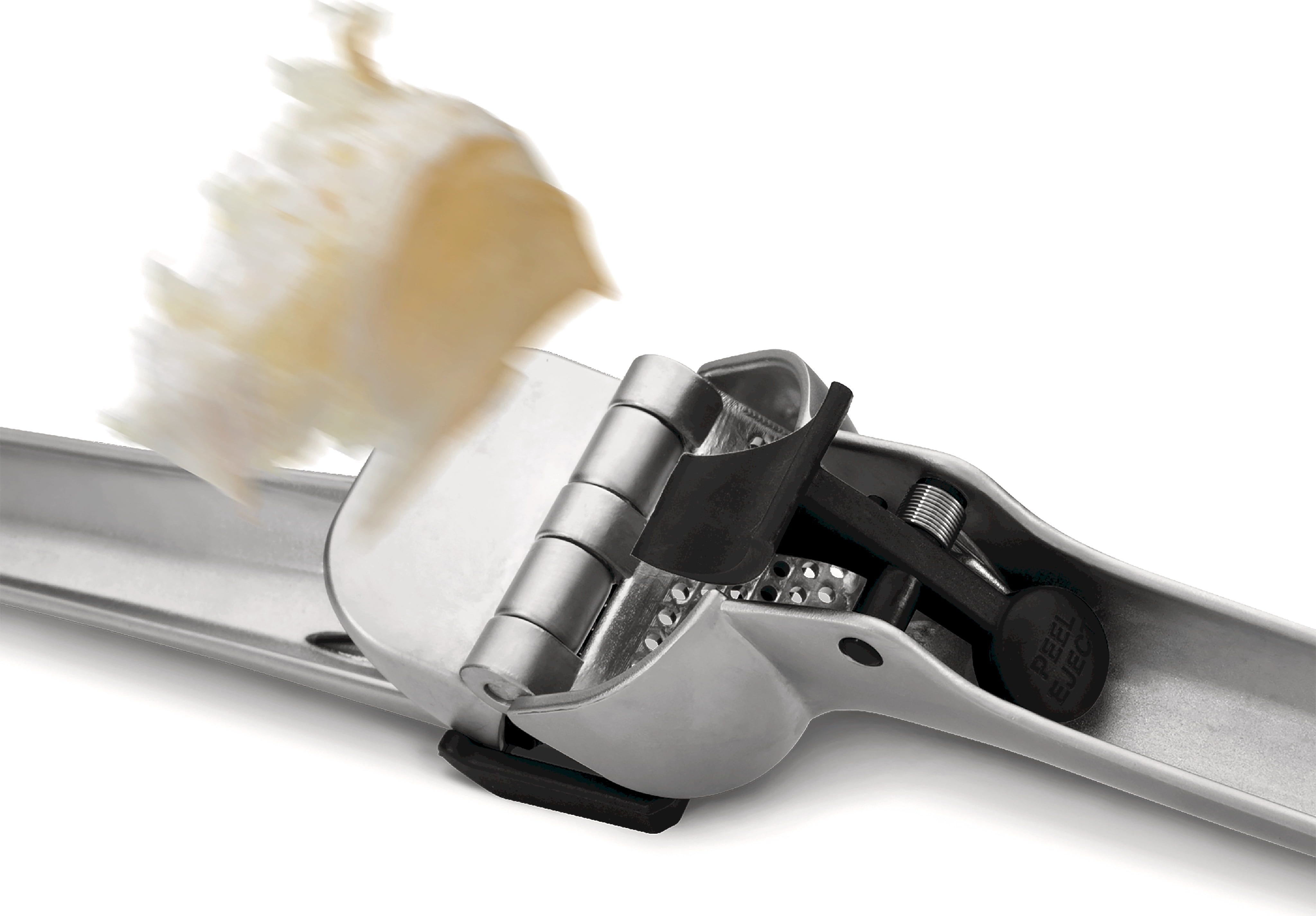 Podczas otwierania automatyczny skrobak usuwa wszystkie pozostałości po wyciskaniu z wnętrza, a sprytny przycisk "Peel Eject" z łatwością wyrzuca skórki. Nie pozostawia to nieprzyjemnego zapachu na dłoniach, a wyciskarka jest gotowa do ponownego użycia natychmiast po szybkim wypłukaniu!