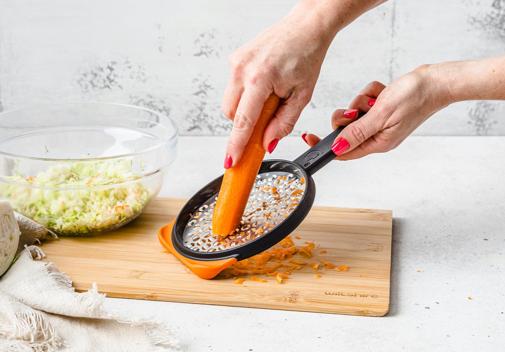 Dzięki tarce Ograte od Dreamfarm możesz w rekordowym czasie zamienić nawet duże ilości kapusty, cebuli lub sera w idealne wiórki. Sekret tkwi w dużej, okrągłej powierzchni tarki, która pozwala również na znacznie wydajniejszą pracę dzięki dwustronnym ostrzom.