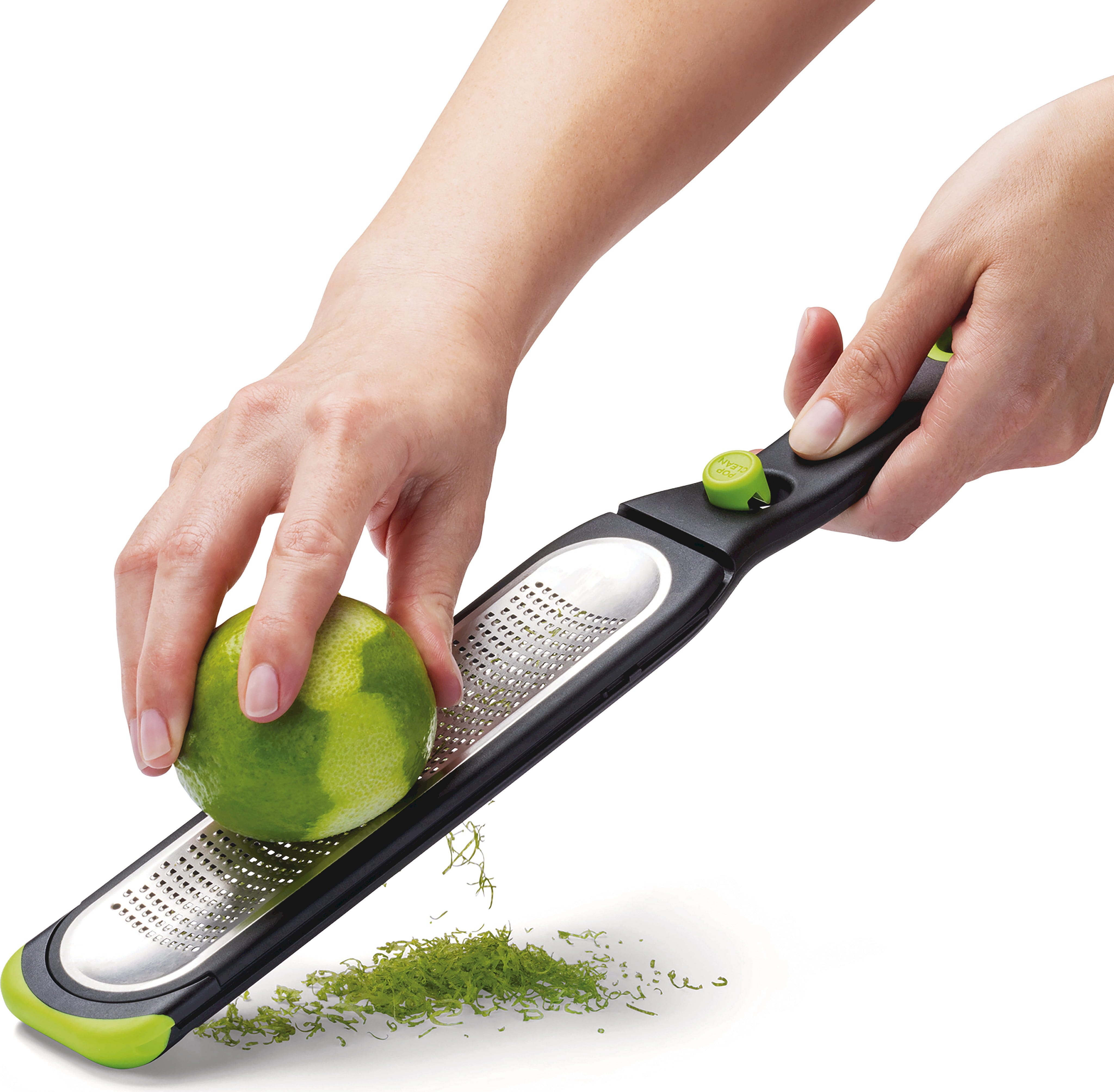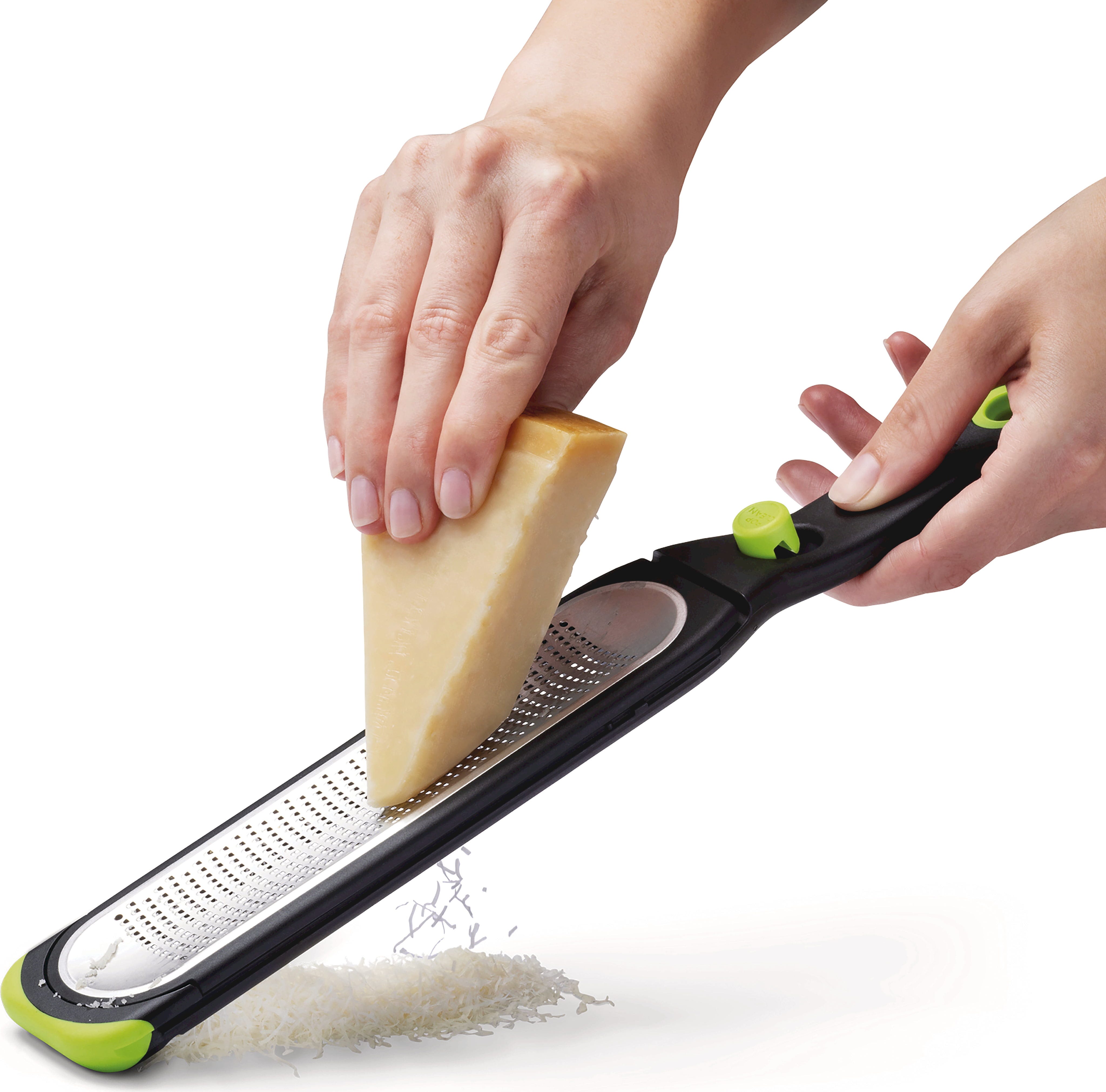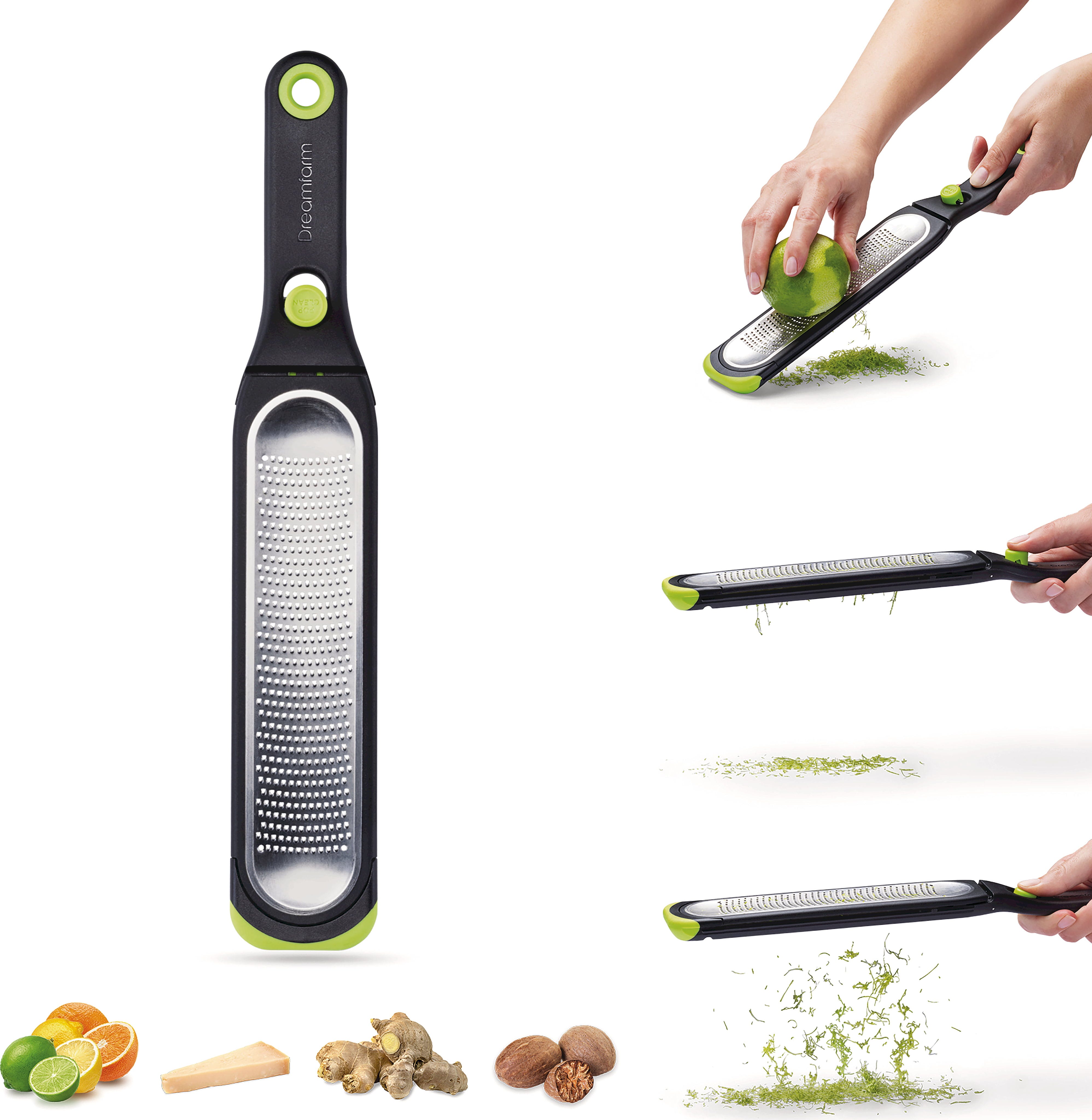 Absolutną atrakcją jest innowacyjna funkcja samooczyszczania: po naciśnięciu przycisku powierzchnia tarki wygina się tak, że cała skórka spada sama i nic nie przykleja się do krawędzi. Zawiera praktyczną osłonę do przechowywania, która może być również używana jako pojemnik do zbierania. Wykonana z wytrzymałej stali nierdzewnej tarka, którą można myć w zmywarce, to idealny wybór do precyzyjnej i wydajnej pracy w profesjonalnej kuchni!