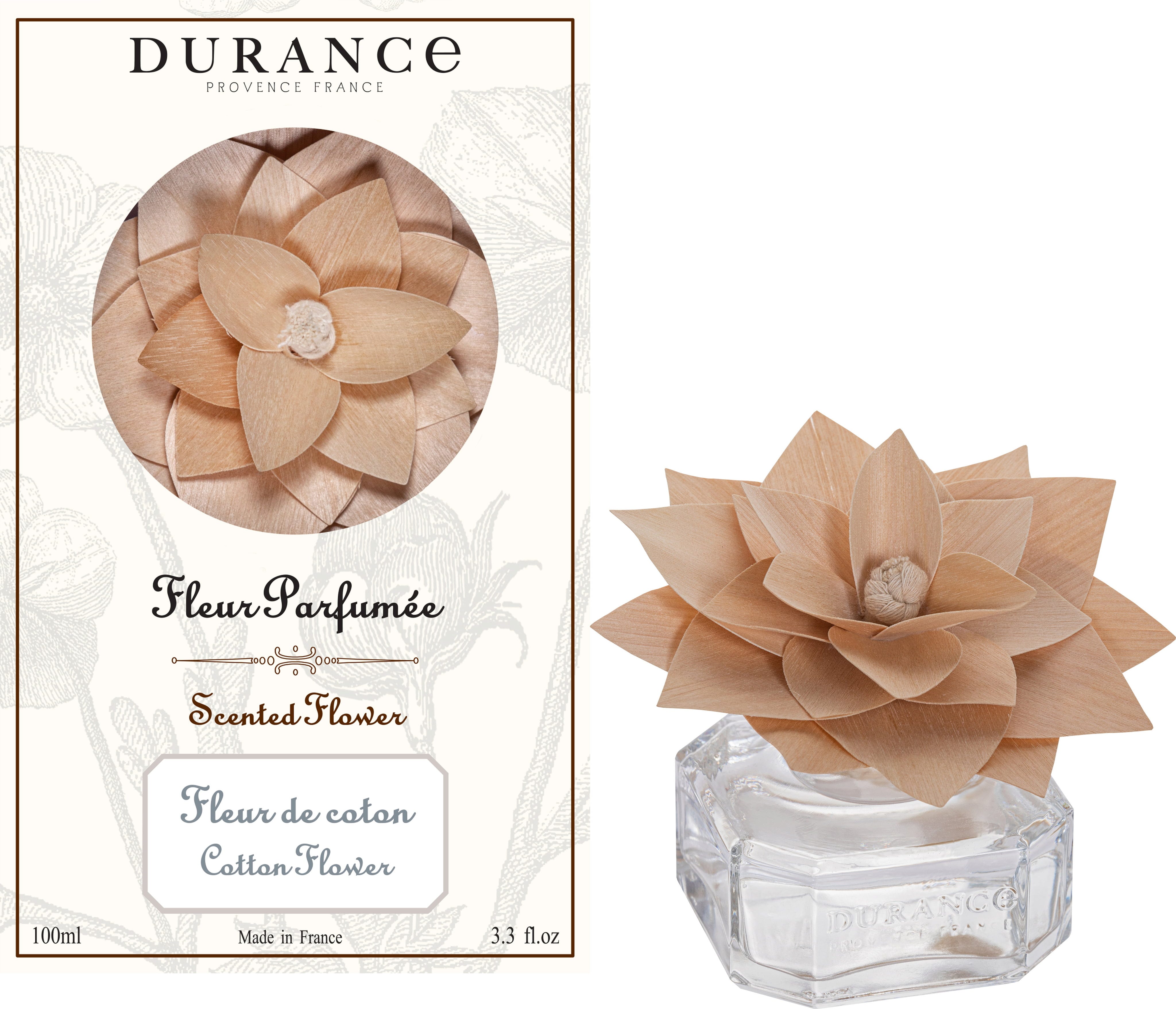 Durance Zapach do pomieszczeń w kształcie drewnianego kwiatu - kwiat bawełny, 100 ml