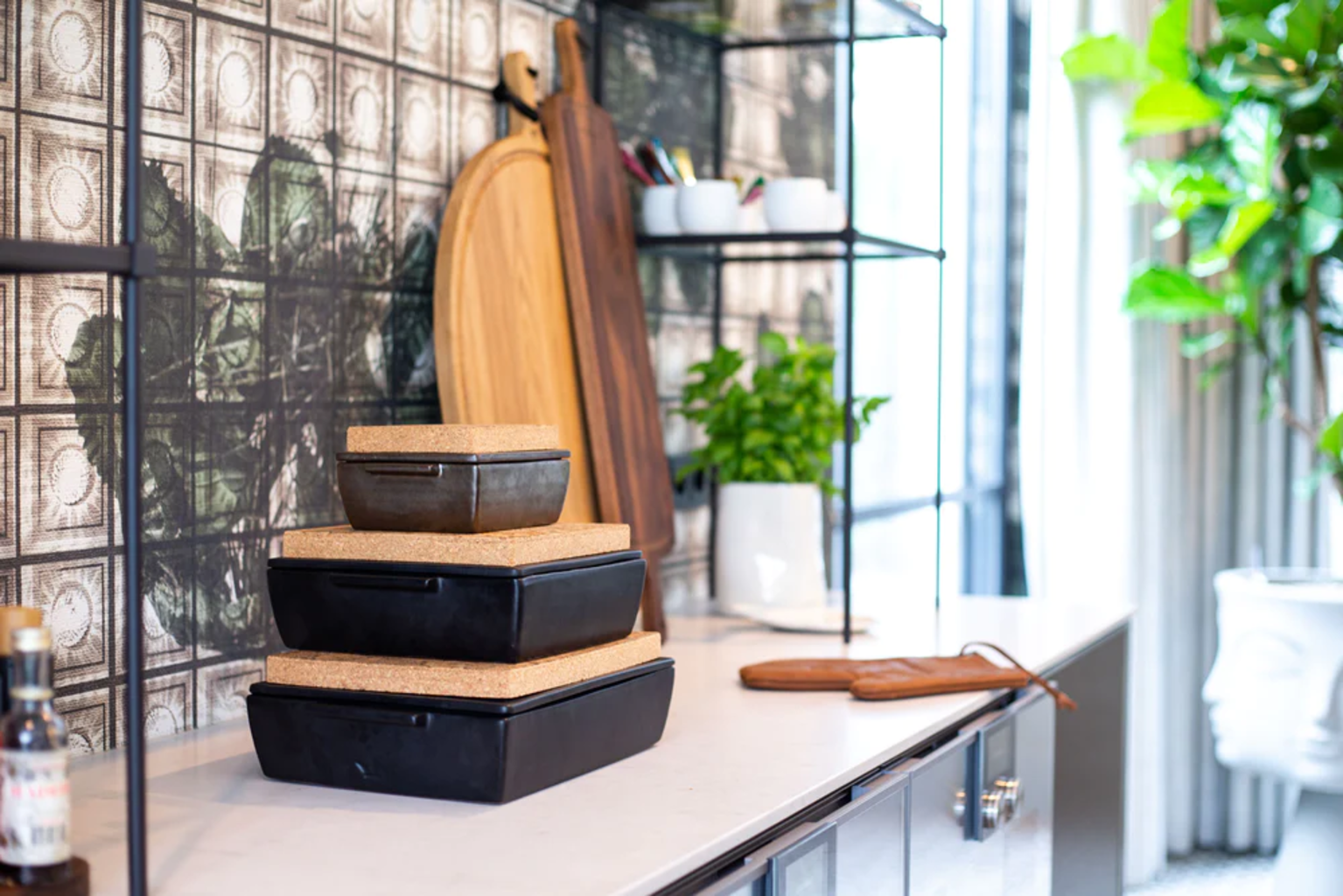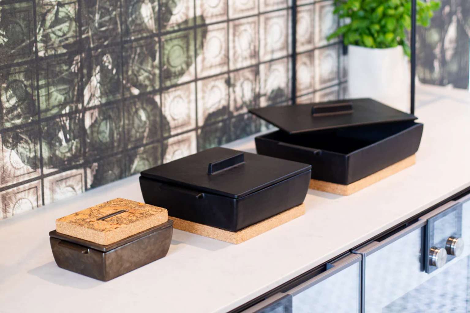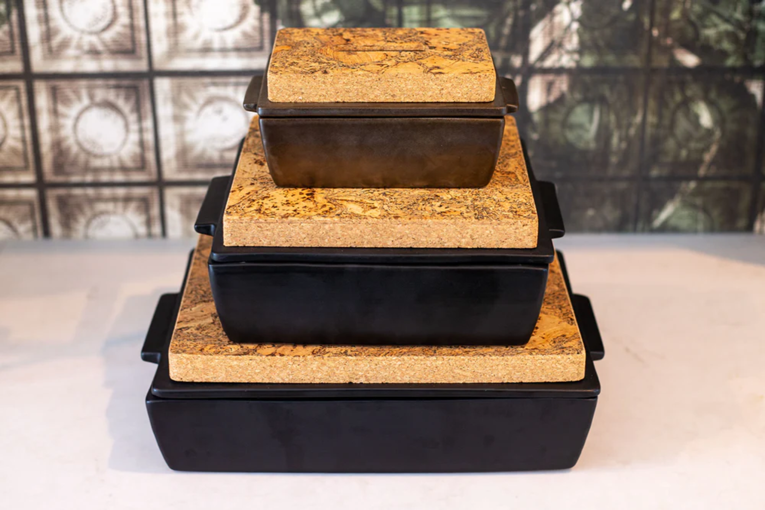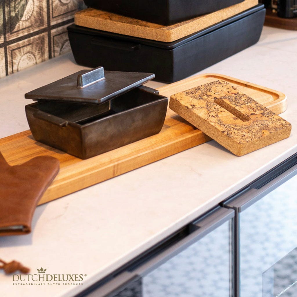 To ręcznie wykonane naczynie żaroodporne z wysokiej jakości ceramiki zachwyca nie tylko doskonałym materiałem i wykonaniem, ale także atrakcyjnym wzornictwem. W zestawie znajduje się pasująca pokrywka do pieczenia i duszenia, a także praktyczna podstawka z naturalnego korka - idealna do układania naczyń o różnych rozmiarach jeden na drugim i wyjątkowo stylowa podczas serwowania na stole.