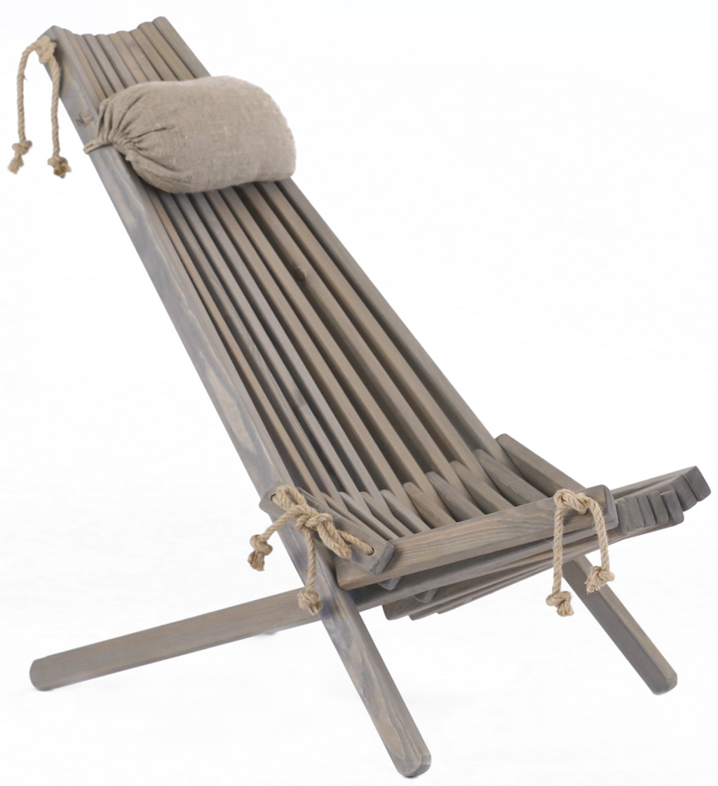 EcoChair oferuje niezapomniane wrażenia z siedzenia w dwóch pozycjach – wyprostowanej do wygodnego czytania lub leżącej do relaksu. Montaż odbywa się wyłącznie za pomocą elastycznej liny konopnej, co zapewnia produktowi maksymalną elastyczność. Nawet na nierównym podłożu, krzesło rozkłada ciężar równomiernie. Gdy nie jest używane, EcoChair można łatwo złożyć, co ułatwia przechowywanie.