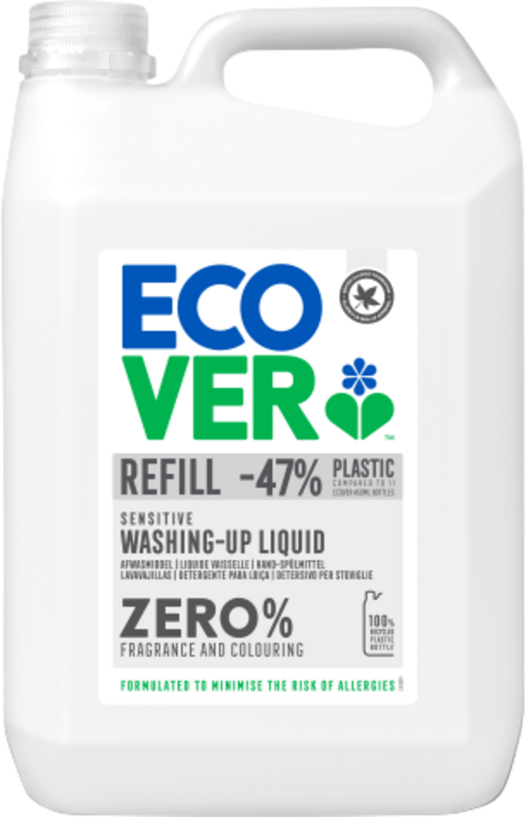 Płyn do mycia rąk Ecover ZERO jest wolny od substancji zapachowych i barwników i jest odpowiedni również dla osób o wrażliwej skórze. Czyści i odtłuszcza mocno, zapewniając czyste naczynia i błyszczące szklanki.
