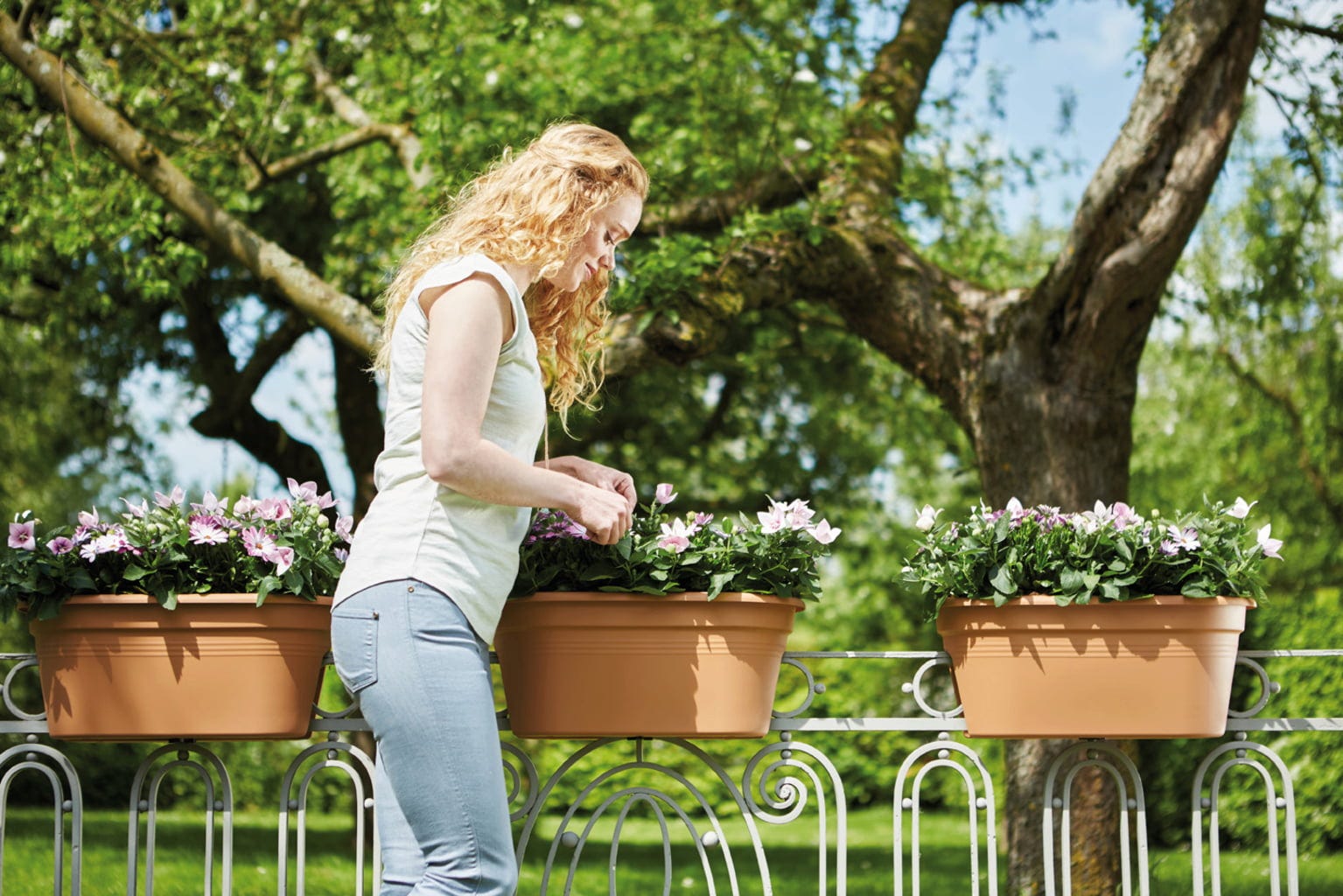 Doniczka green basics flower bridge jest idealna, aby przekształcić balkon w zielony raj. Można ją szybko, łatwo i bezpiecznie przymocować do balustrady balkonu i upiększyć ją w wyjątkowy sposób. Ponieważ doniczka ta jest bardzo stabilna i nie może się przewrócić po prawidłowym zamocowaniu za pomocą dostarczonego elementu mocującego, jest również całkowicie bezpieczna dla dzieci i zwierząt domowych.