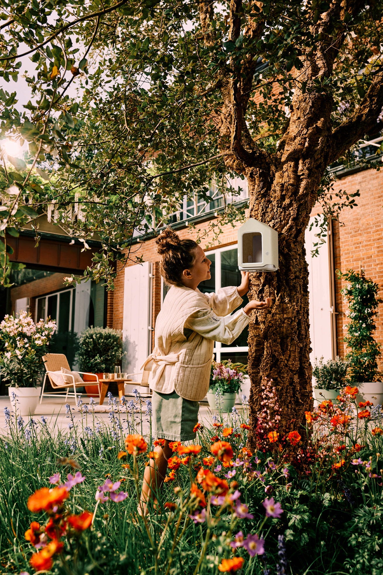 Ten stylowy karmnik dla ptaków wykonany z plastiku pochodzącego z recyklingu został opracowany we współpracy z ekspertami, a dzięki naturalnym kolorom harmonijnie komponuje się z pięknie zaprojektowanymi ogrodami, tarasami i balkonami. Posiada chroniony obszar z wanną dla ptaków i miejscem do karmienia, dzięki czemu możesz zaoferować swoim pierzastym gościom bezpieczne miejsce do karmienia i wygodnym miejscem do odpoczynku.