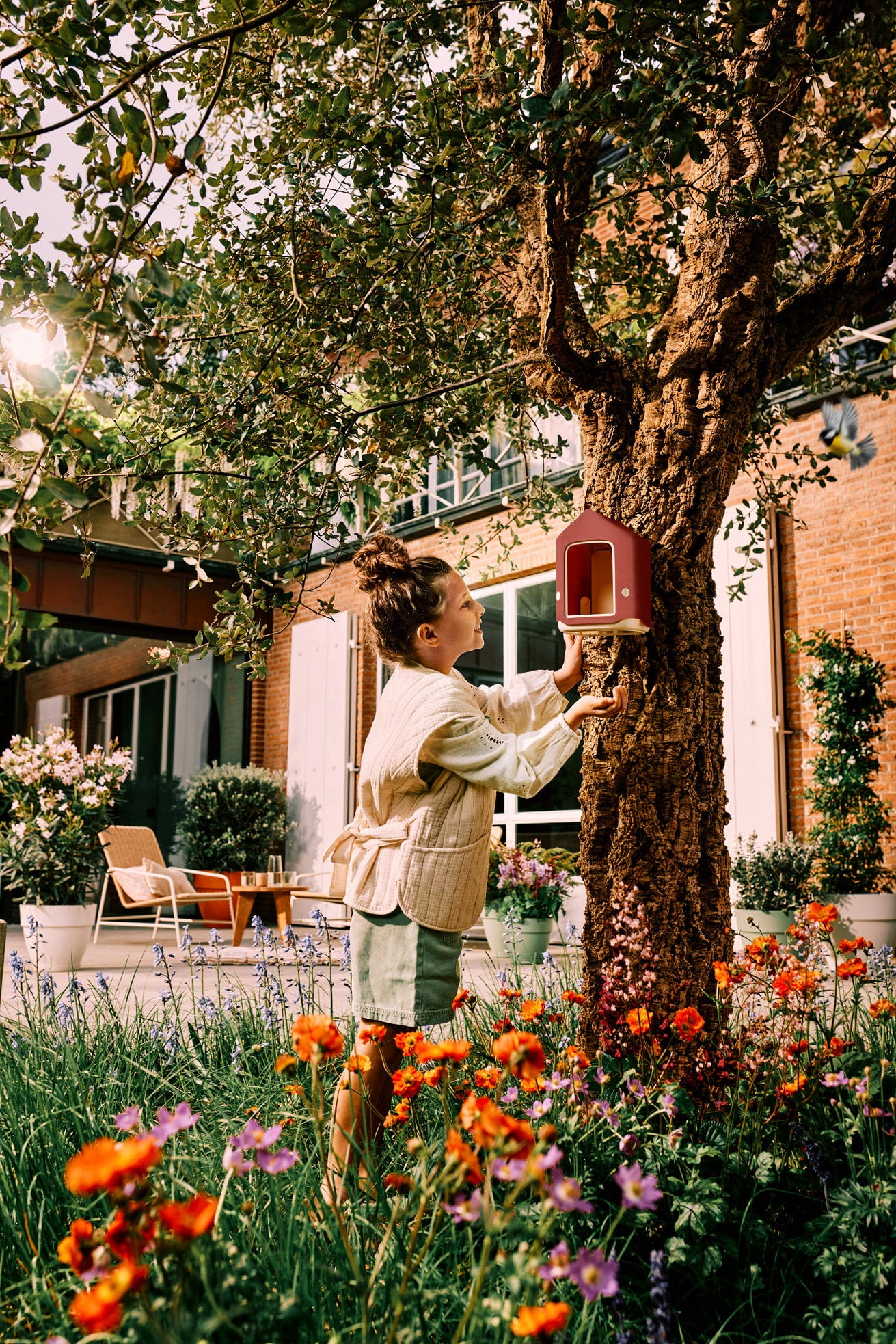 Ten stylowy karmnik dla ptaków wykonany z plastiku pochodzącego z recyklingu został opracowany we współpracy z ekspertami, a dzięki naturalnym kolorom harmonijnie komponuje się z pięknie zaprojektowanymi ogrodami, tarasami i balkonami. Posiada chroniony obszar z wanną dla ptaków i miejscem do karmienia, dzięki czemu możesz zaoferować swoim pierzastym gościom bezpieczne miejsce do karmienia i wygodnym miejscem do odpoczynku.