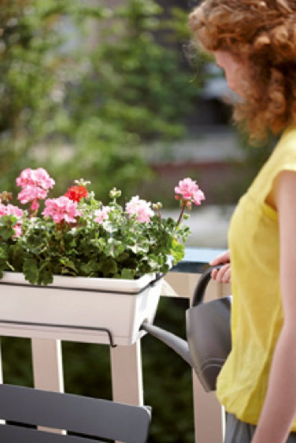Dzięki praktycznemu zestawowi balkonowemu barcelona typu „all-in-1 Set” możesz w mgnieniu oka zmienić swój balkon w zieloną oazę. Mały wysiłek, a efekt świetny: produkt z łatwością można zawiesić na balustradzie balkonu. Dołączona do zestawu podstawka magazynuje nadmiar wody deszczowej i do nawadniania i dostarcza ją roślinom w razie potrzeby. Nie ma znaczenia, jeśli zapomnisz o podlewaniu.
