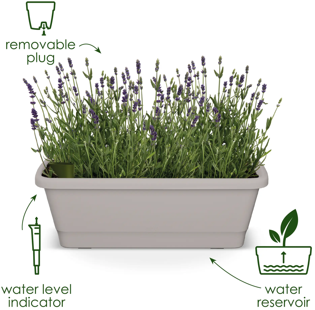 Dzięki skrzynce balkonowej Noa jesteś dobrze wyposażony przez cały rok. Wytrzymały materiał jest całkowicie odporny na warunki atmosferyczne i dlatego można go pozostawić na zewnątrz nawet zimą. Ale Noa może zaimponować także w miesiącach letnich, ponieważ w ziemi ukryty jest duży zbiornik na wodę, który chroni rośliny przed śmiercią z pragnienia. Nawet jeśli zapomnisz podlać, Twoi podopieczni zawsze będą pod dobrą opieką.