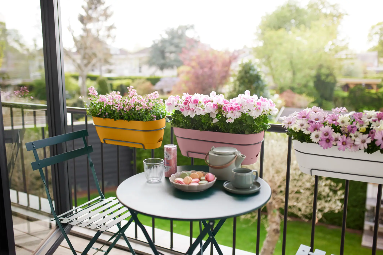 Dzięki tej ekologicznej skrzynce balkonowej w modnych kolorach możesz w nowoczesny sposób zazielenić balustrady balkonowe, ogrodzenia i parapety okienne i przekształcić swój dom w zieloną oazę. Niezależnie od tego, czy pojedynczo, czy w połączeniu z innymi doniczkami z serii vibia, ta skrzynka balkonowa zawsze przyciąga wzrok.
