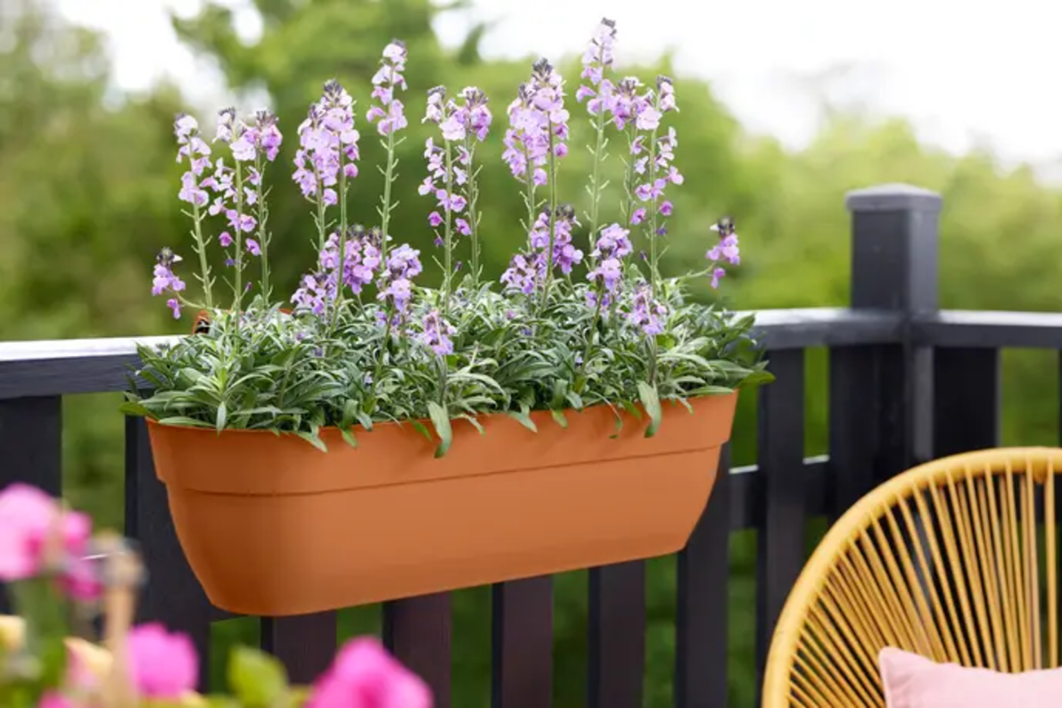 Skrzynka balkonowa elho Vibia Campana Easy Hanger XXL zamieni Twój balkon w zielony raj. Łatwa w montażu, stabilna i odpowiednia do balustrad o szerokości do 6,5 cm. Zintegrowane rury przelewowe zapewniają, że rośliny pozostaną zdrowe, a skrzynka balkonowa jest odporna na warunki atmosferyczne, trwała i łatwa do czyszczenia. Wykonana w 100% z plastiku pochodzącego z recyklingu i wyprodukowana w sposób zrównoważony przy użyciu energii wiatrowej.