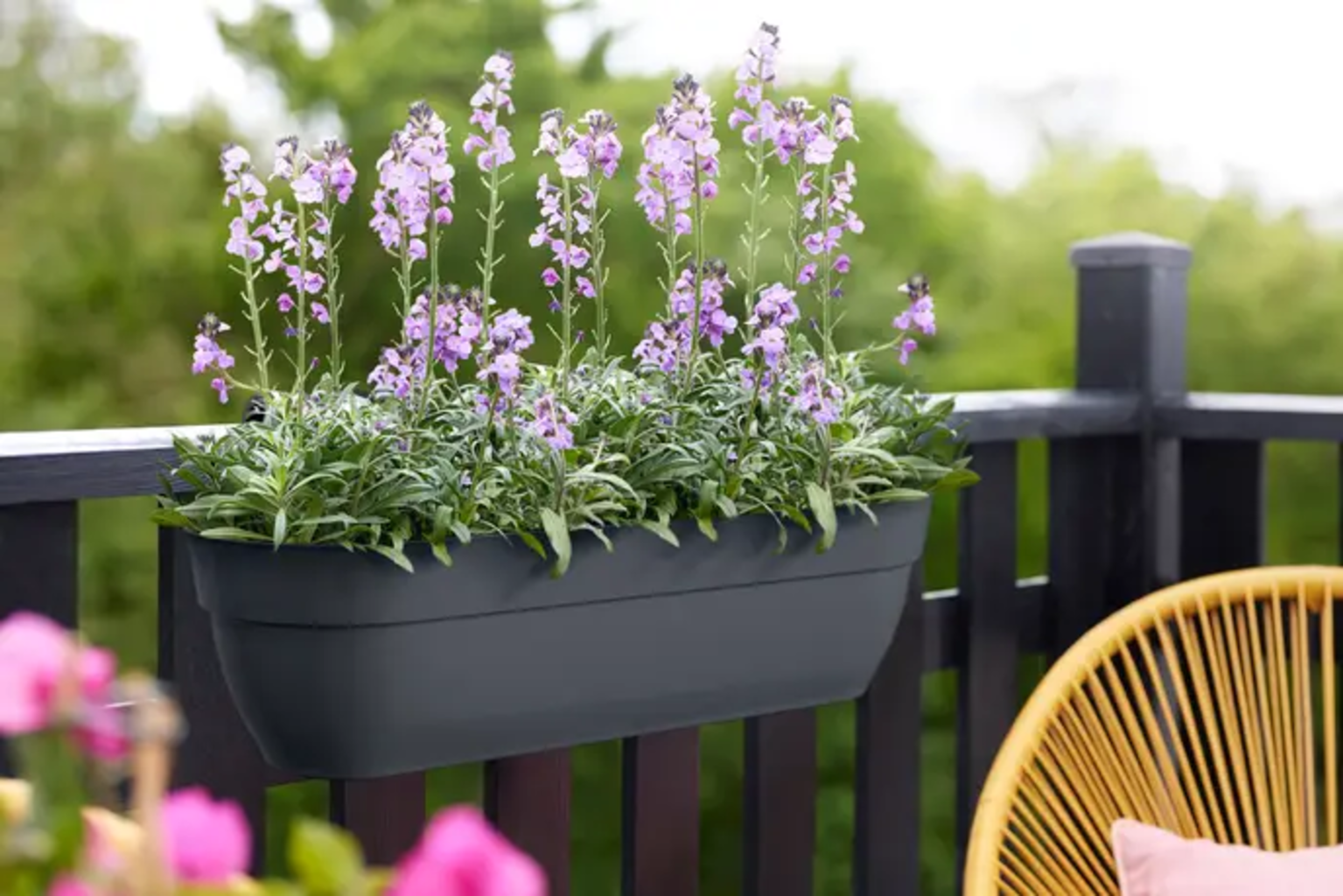 Skrzynka balkonowa elho Vibia Campana Easy Hanger XXL zamieni Twój balkon w zielony raj. Łatwa w montażu, stabilna i odpowiednia do balustrad o szerokości do 6,5 cm. Zintegrowane rury przelewowe zapewniają, że rośliny pozostaną zdrowe, a skrzynka balkonowa jest odporna na warunki atmosferyczne, trwała i łatwa do czyszczenia. Wykonana w 100% z plastiku pochodzącego z recyklingu i wyprodukowana w sposób zrównoważony przy użyciu energii wiatrowej.