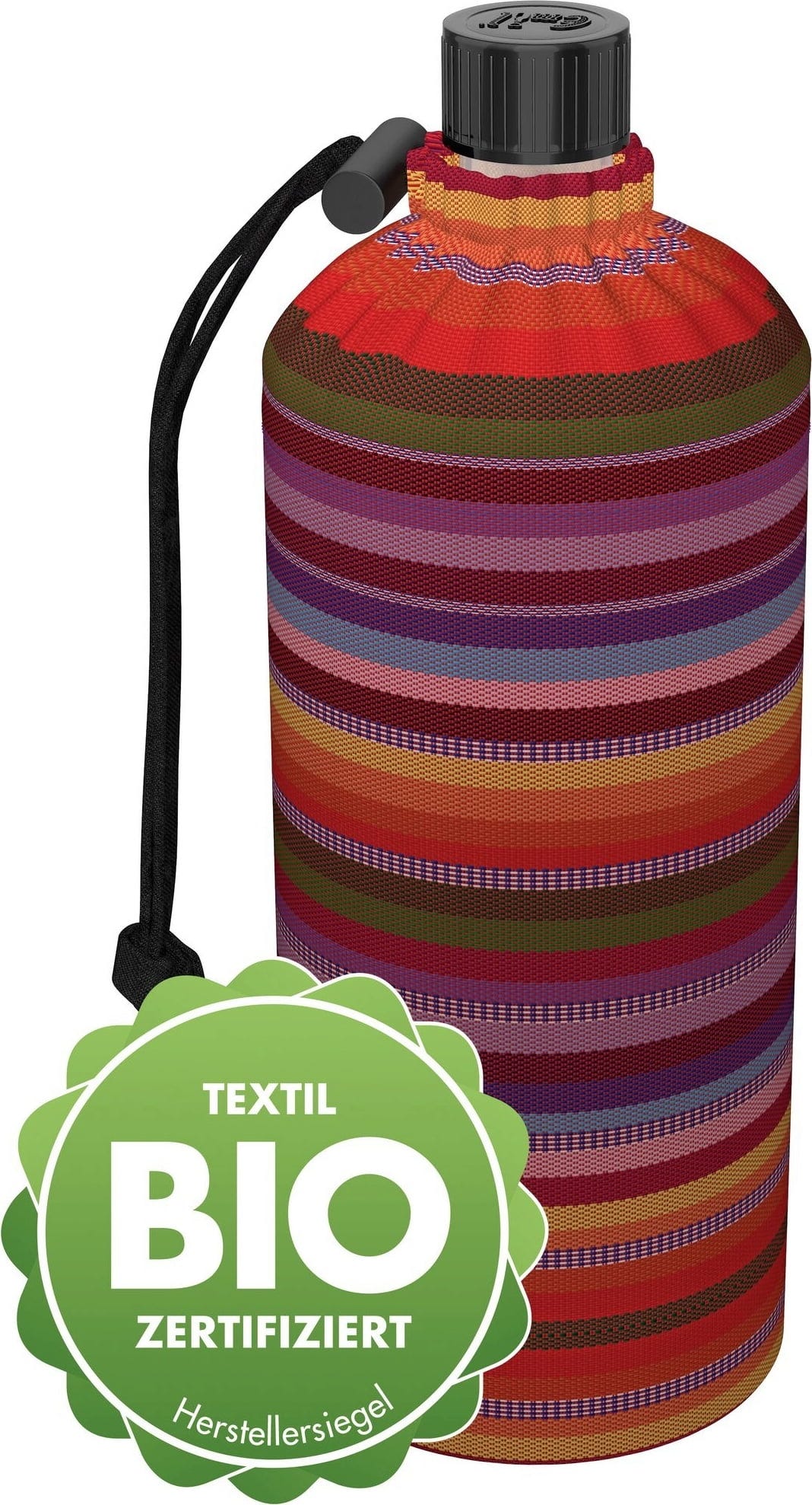 Emil – die Flasche® Ekologiczna butelka z pokrowcem w paski, 0,6 L