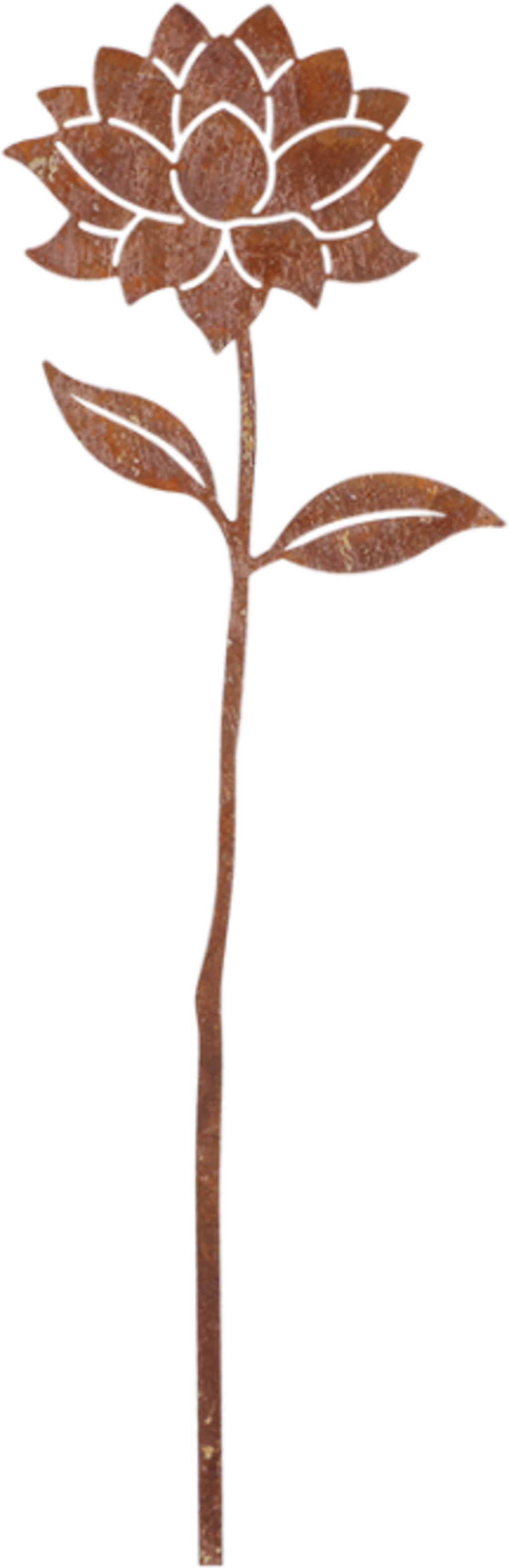 Wycinany laserowo palik ogrodowy Dahlia wnosi rustykalny urok i naturalną elegancję do każdego ogrodu. Rdzawa powierzchnia z czasem pokrywa się autentyczną patyną, stając się prawdziwą ozdobą ogrodu. Wszechstronny w zastosowaniu – na rabacie, na tarasie lub w donicy.