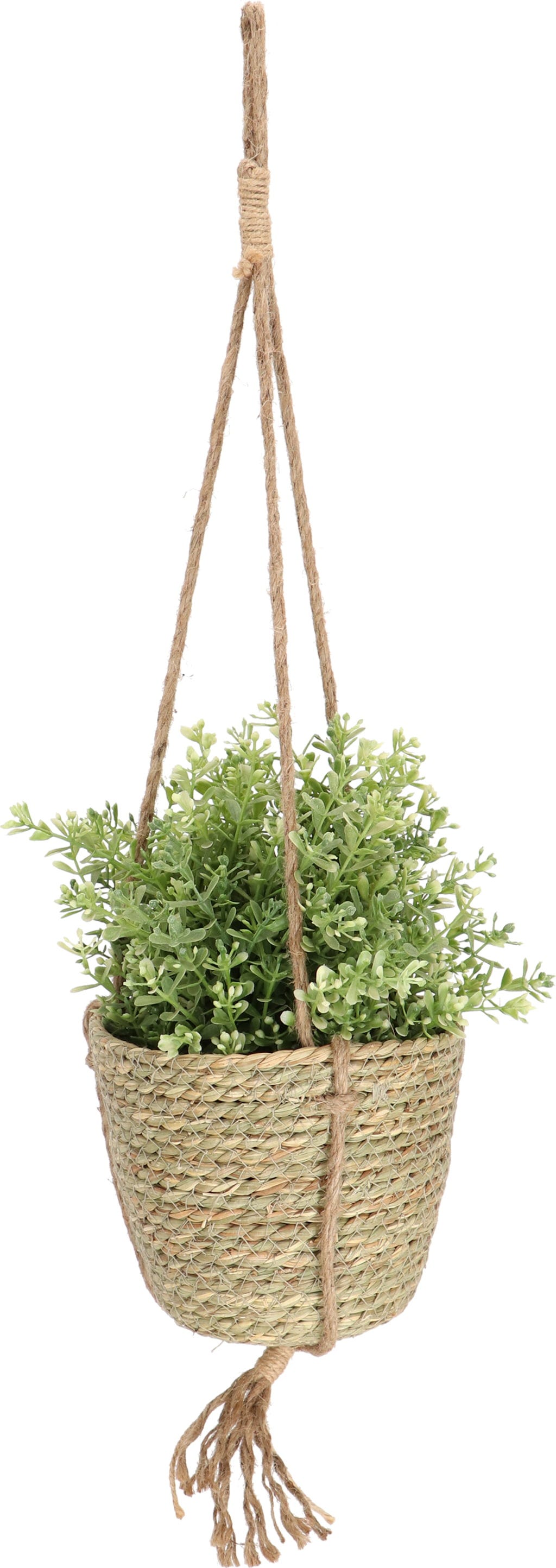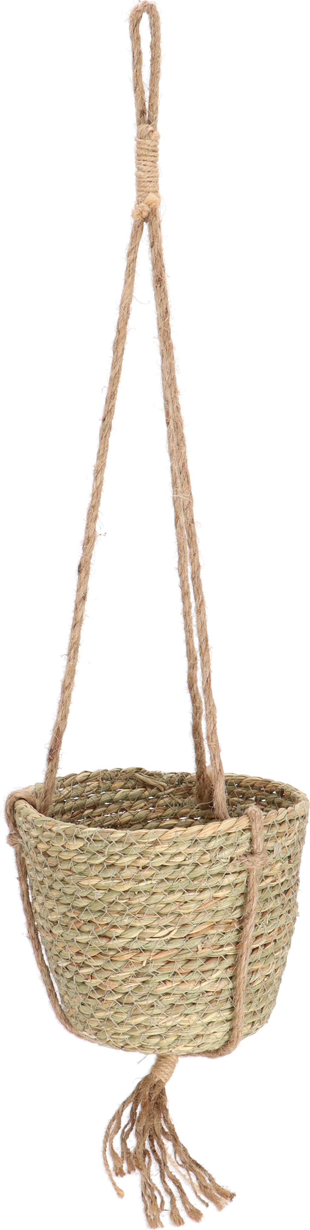 Ten ręcznie wykonany wiszący kosz jest idealnym rozwiązaniem do dekoracyjnego umieszczania roślin w pomieszczeniach. Naturalny materiał tworzy ciepły wygląd i harmonijnie łączy się z różnymi stylami wnętrz.