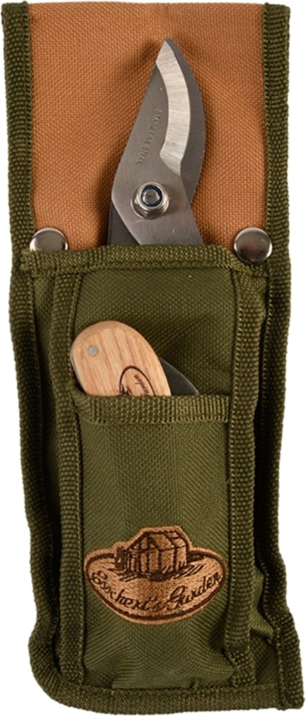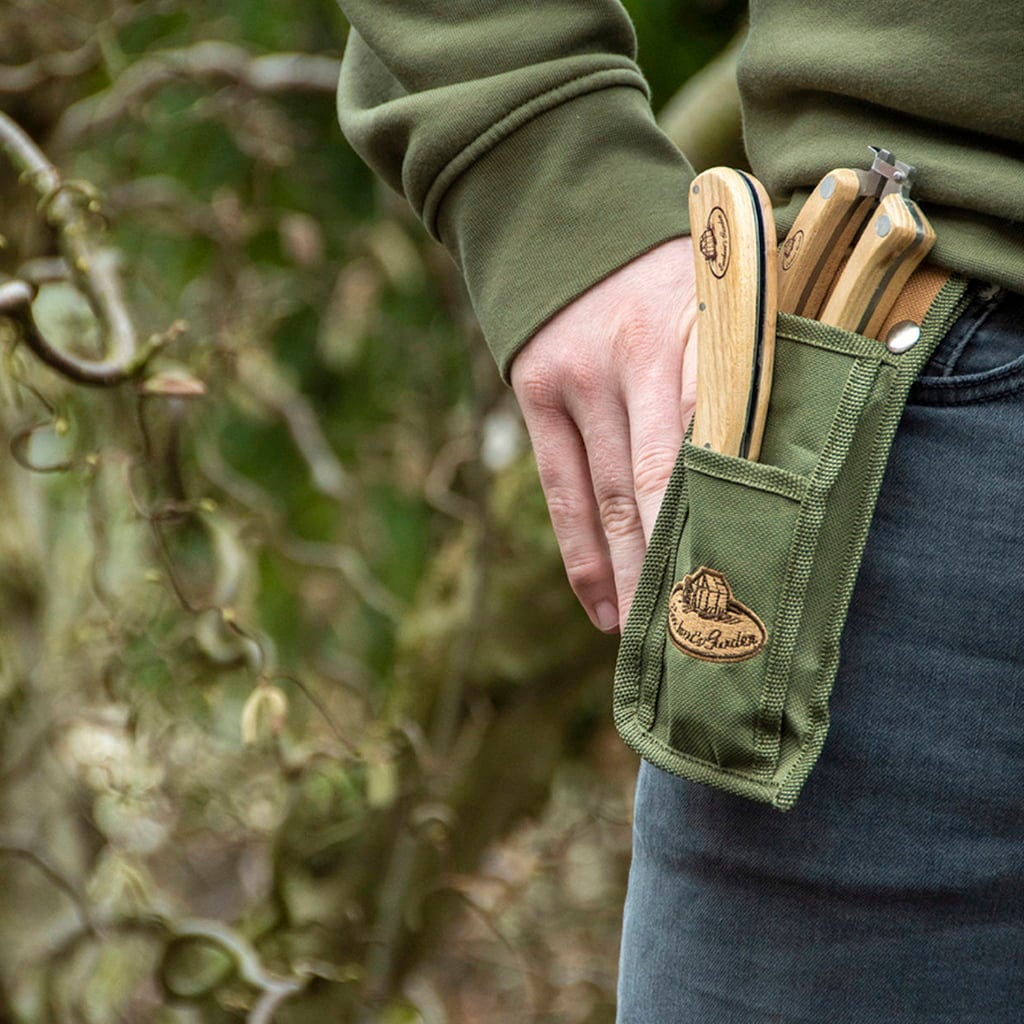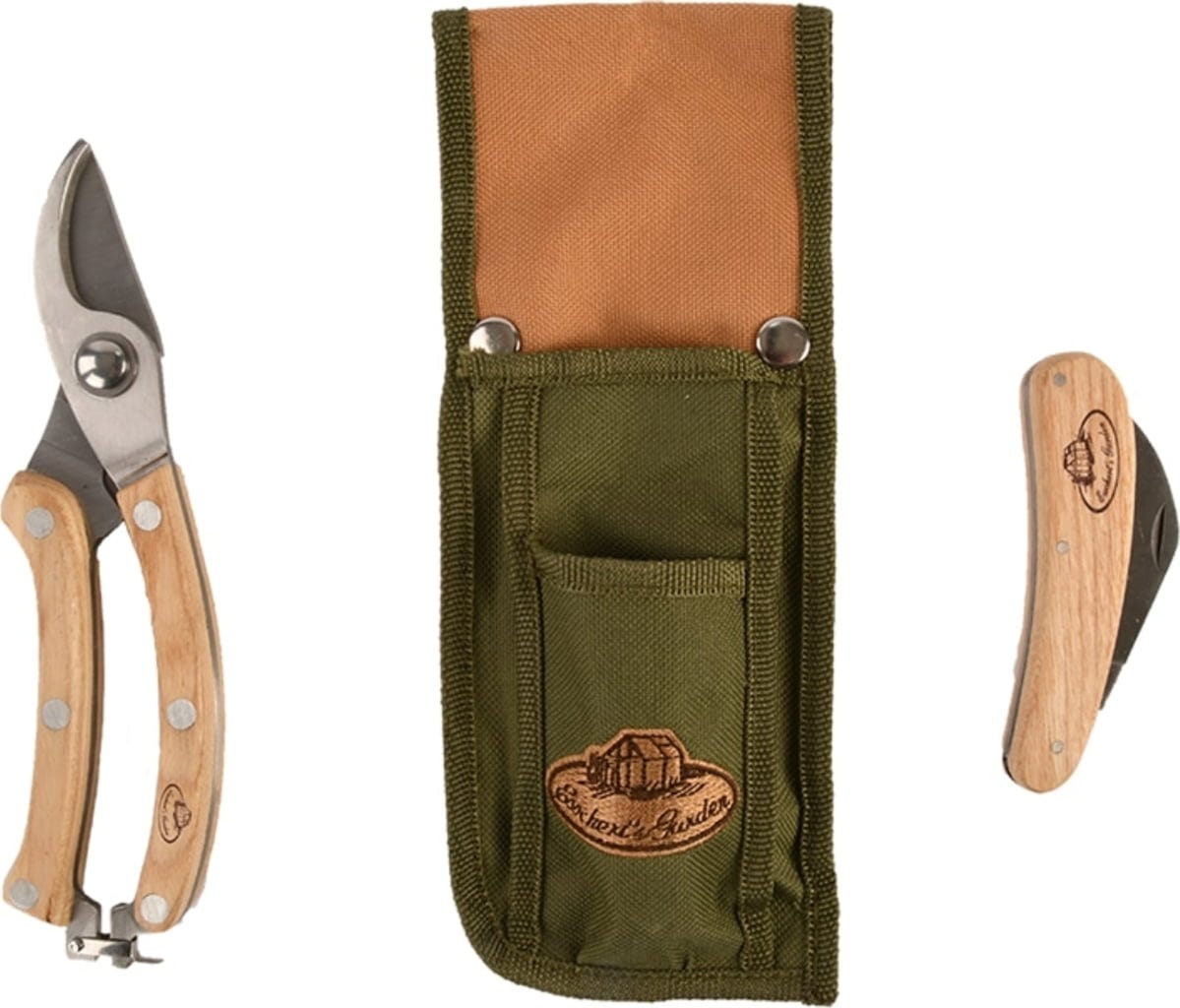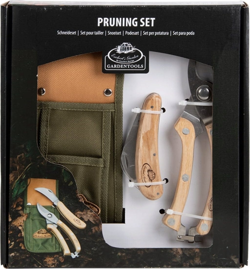 Wspaniały zestaw, który jest szczególnie przydatny podczas prac ogrodowych i przycinania. Składa się z pary sekatorów, składanego noża i praktycznej torby do przechowywania. Narzędzia ogrodowe są wykonane ze stali nierdzewnej i drewna jesionowego i mogą wytrzymać intensywne użytkowanie. Płócienna torba służy nie tylko do przechowywania narzędzi, ale może być również praktycznie przymocowana do paska.