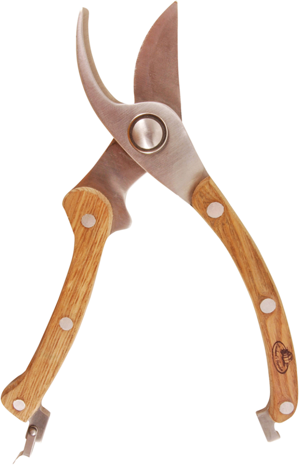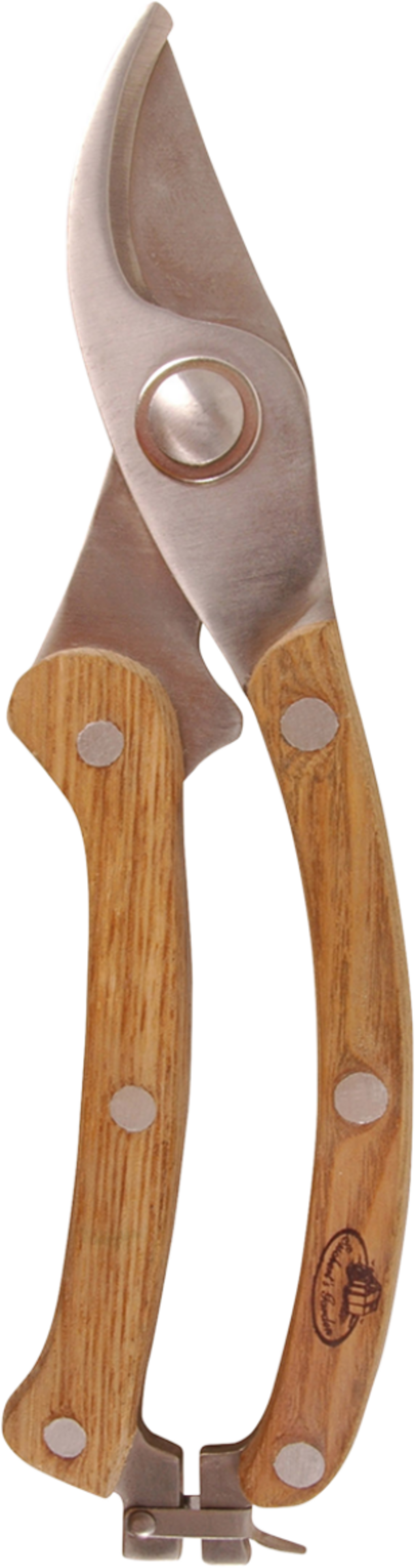 Nożyczki do kwiatów wykonane ze stali nierdzewnej i drewna jesionowego. Ze skórzaną pętelką do zawieszenia.