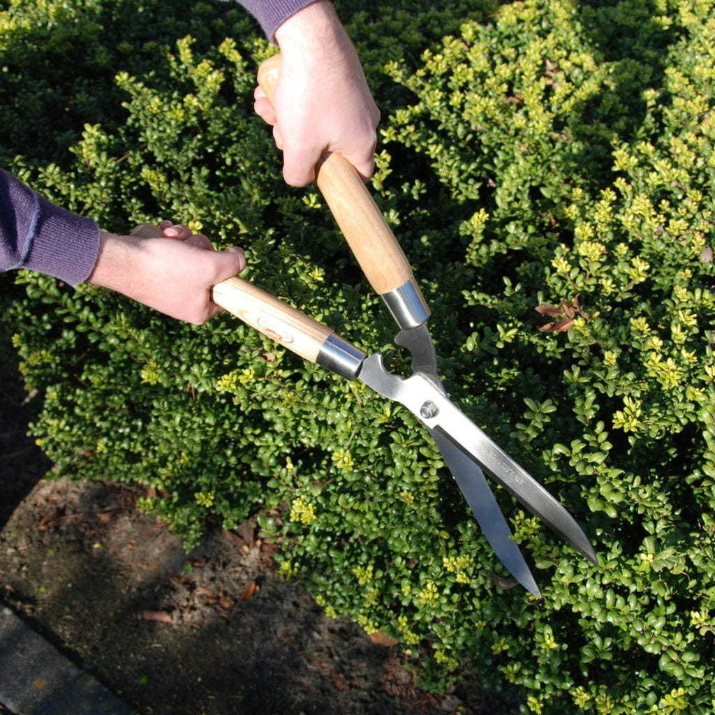 Te tradycyjne nożyce do żywopłotu są idealne do przycinania i formowania żywopłotów, krzewów i krzewinek. Wysokiej jakości stal nierdzewna i drewno jesionowe zapewniają długą żywotność.