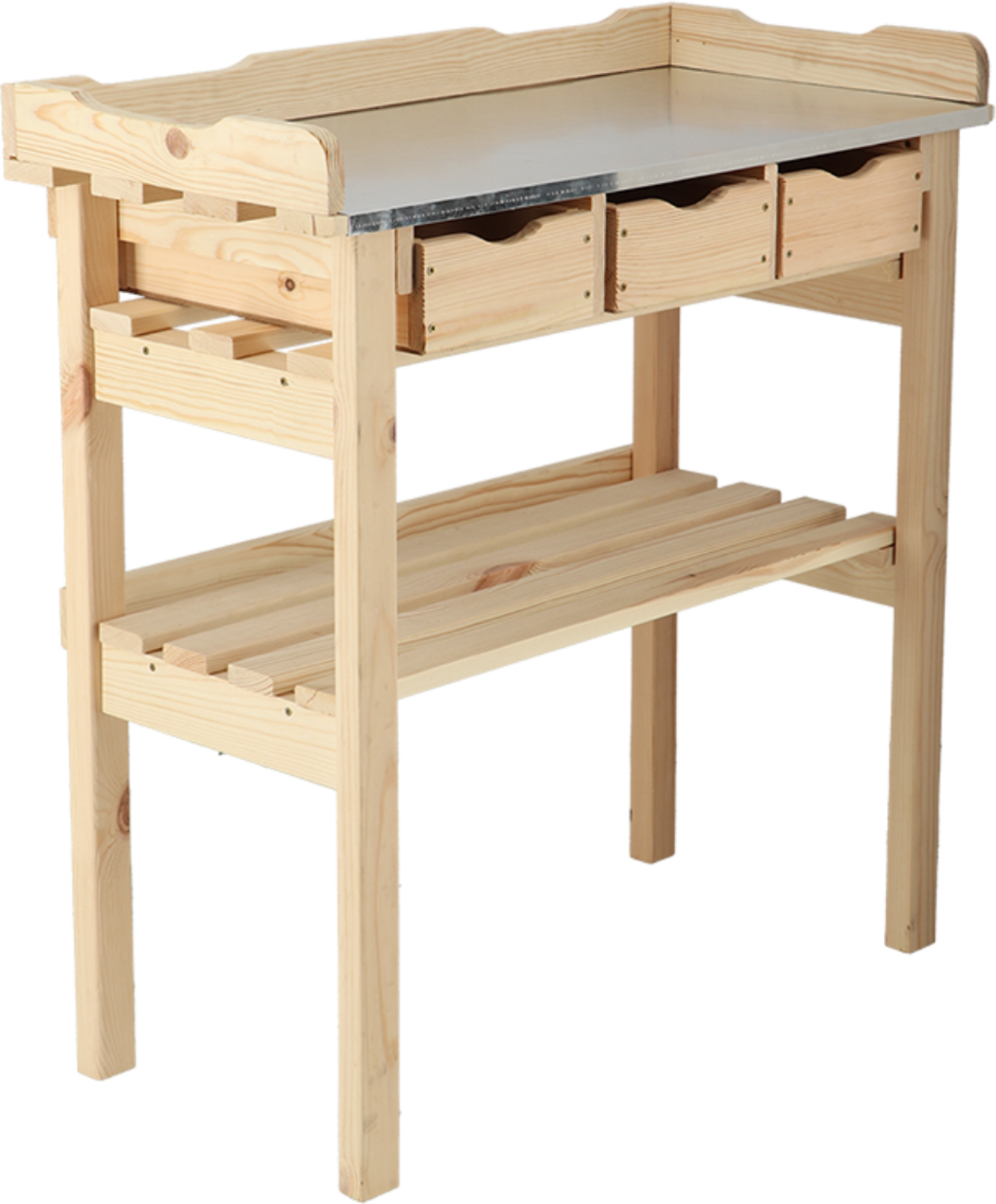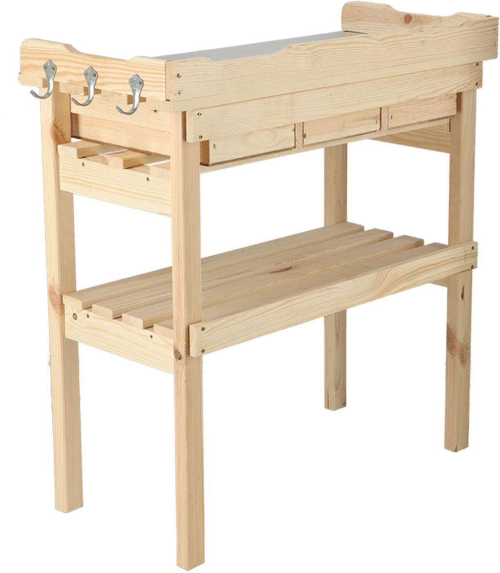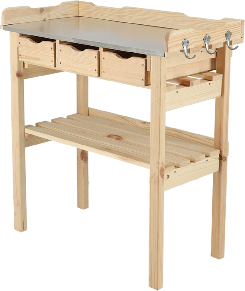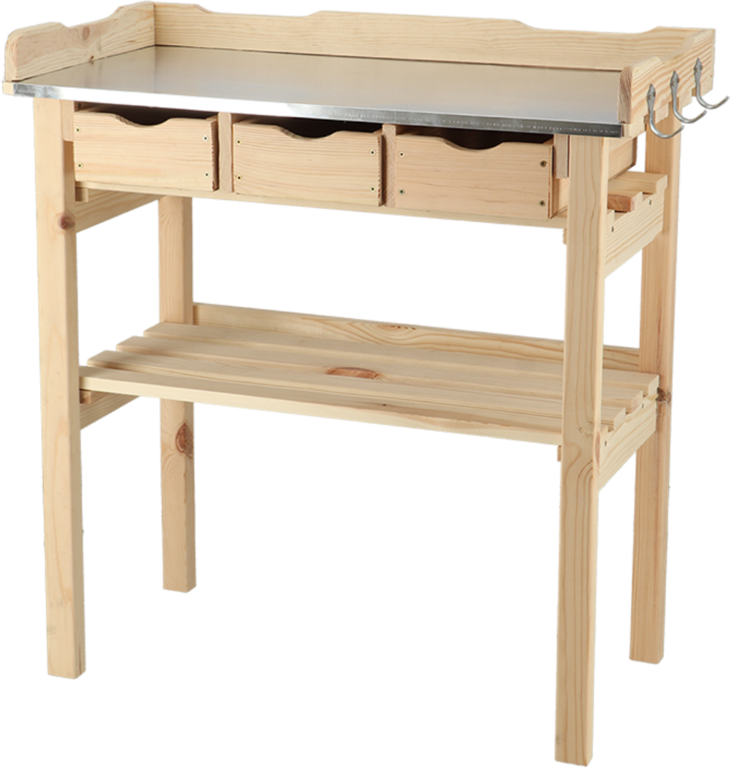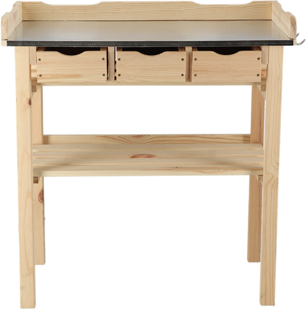 Jeśli nie chcesz rezygnować z komfortu i funkcjonalności podczas sadzenia i przesadzania roślin, ten stół jest właśnie dla Ciebie. Stół wykonany jest z pięknego drewna sosnowego i jest szczególnie imponujący dzięki wysokości przyjaznej dla pleców. Blat wykonany jest z wytrzymałego i łatwego w pielęgnacji cynku, dzięki czemu jest wyjątkowo łatwy w czyszczeniu. Trzy szuflady zapewniają wiele miejsca do przechowywania, dzięki czemu przewody, nożyczki, kielnie itp. mogą być zawsze w zasięgu ręki.