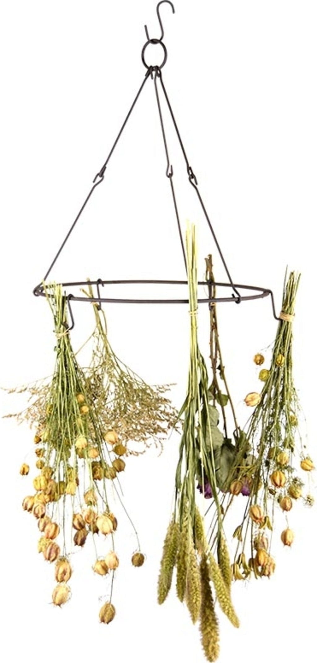 Ten stojak sprawia, że jest to bardzo łatwe, a także wygląda czarująco. Zwiąż kilka gałązek świeżych ziół sznurkiem i zawieś je do góry nogami na jednym z pięciu haków tej suszarki do ziół.