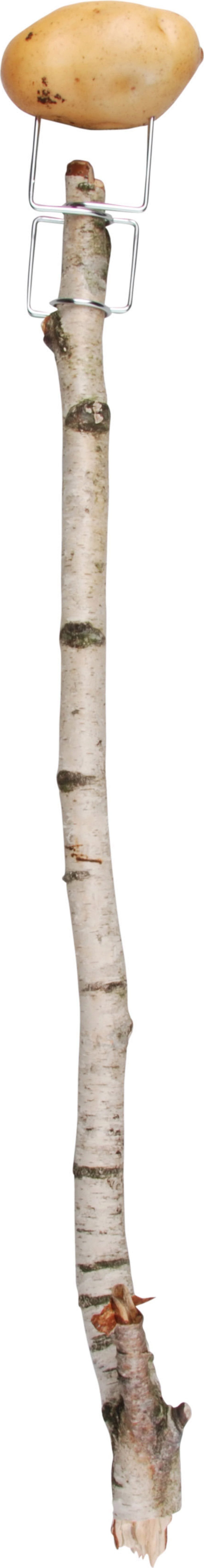 Dwa oszczędzające miejsce szpikulce do grilla, które są szybko gotowe do użycia. Wystarczy przymocować je do odpowiedniego kija lub gałęzi i nadziać na nie kiełbasę, ziemniaki itp.