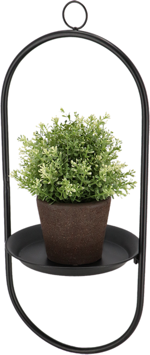 Dzięki wieszakowi na rośliny wykonanemu z wytrzymałego żelaza masz w swoim domu kolejny element przyciągający wzrok. Dzięki dużemu pierścieniowi możesz z łatwością przymocować akcesorium do haczyka lub podobnego przedmiotu. Wystarczy umieścić roślinę i doniczkę na platformie i już teraz spojrzeć na nią z zupełnie nowej perspektywy.