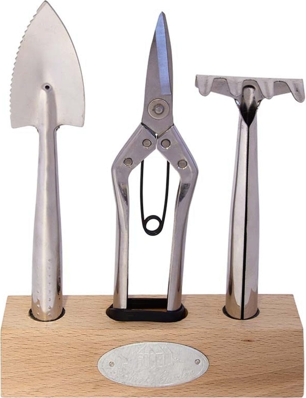 Zestaw zawiera grabie do roślin doniczkowych, nożyczki do kwiatów i łopatkę do roślin doniczkowych.