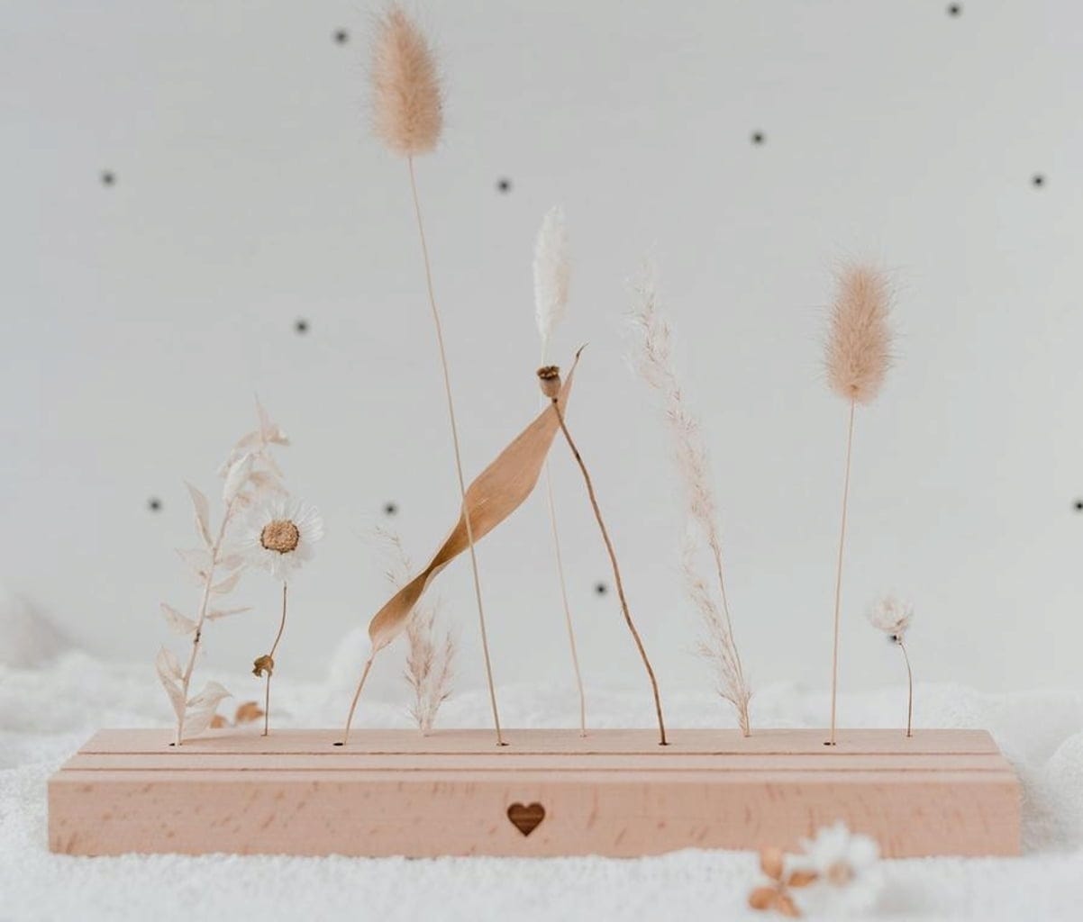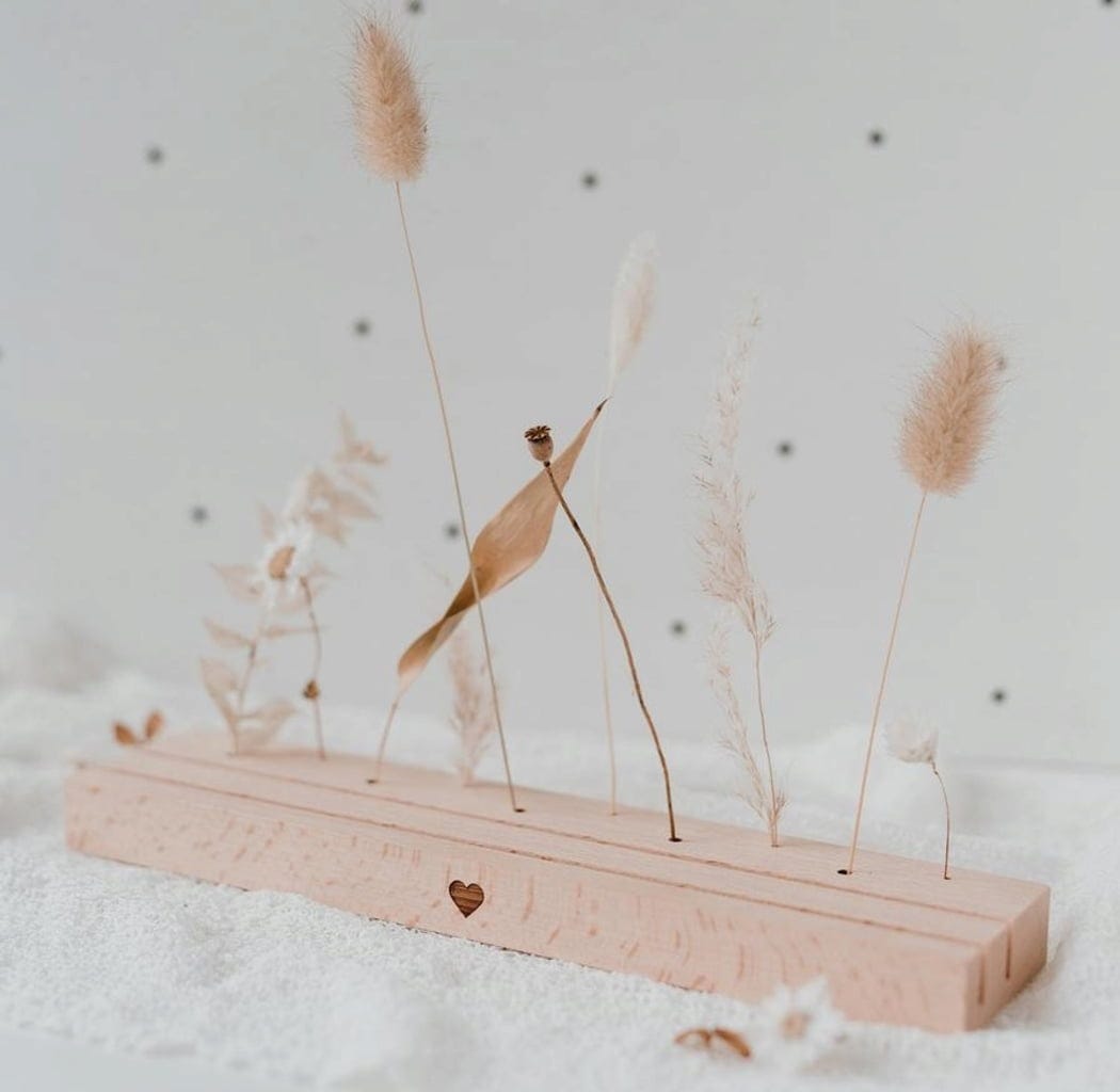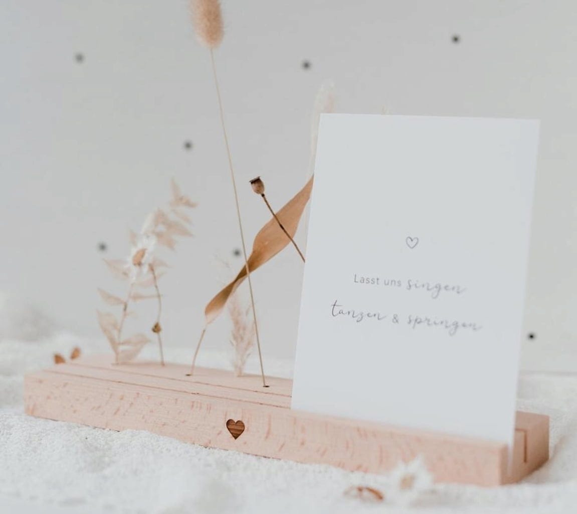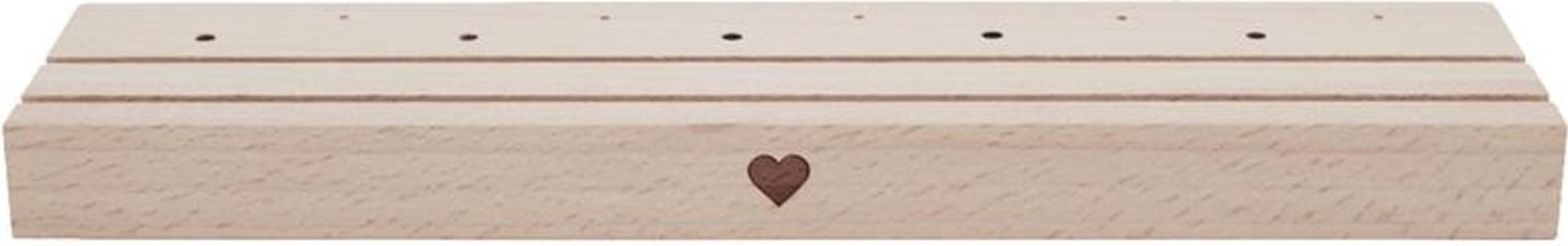 Ten piękny stojak na kartki i suszone kwiaty wykonany z wysokiej jakości drewna bukowego z grawerem serca to świetny sposób na zaprezentowanie ulubionych przedmiotów i wspomnień. Dzięki długości 25 cm, dwóm kolumnom i 10 małym otworom, oferuje wystarczająco dużo miejsca na suszone kwiaty, zdjęcia, obrazki i pocztówki, które można wielokrotnie przestawiać, dodawać lub wymieniać. Nie ma żadnych ograniczeń dla Twojej własnej kreatywności.