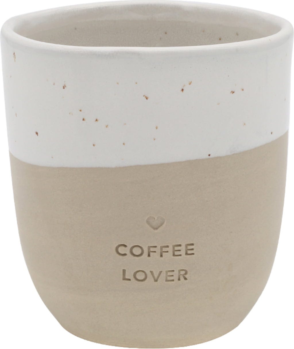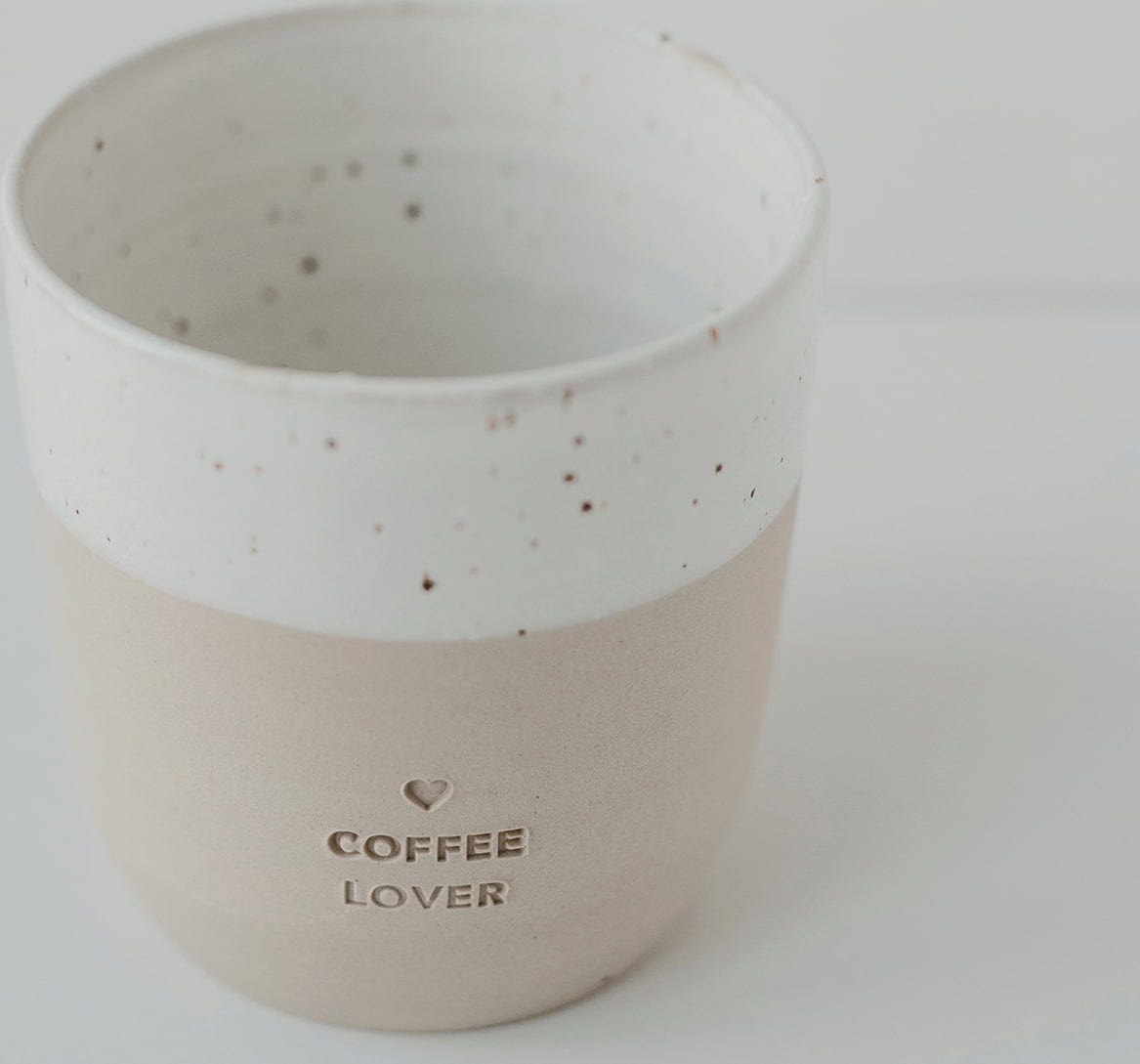 Ten piękny kubek wykonany z wysokiej jakości kamionki to idealny wybór nie tylko dla miłośników kawy. Misternie i z miłością wykonany ręcznie w małej garncarni w Portugalii, zachwyca uroczym designem, wyjątkowym szkliwem i uroczym wytłoczeniem "Coffee Lover" z małym serduszkiem. Absolutny faworyt, który stanowi również doskonały prezent na wiele okazji.