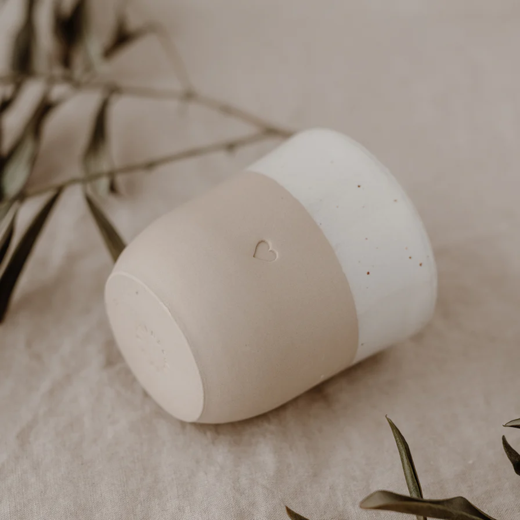 Łyk kawy lub herbaty z tego kubka rozgrzeje Twoje serce. Wykonany ręcznie z miłością, prosty design urzeka naturalnymi niuansami kolorystycznymi użytej kamionki.