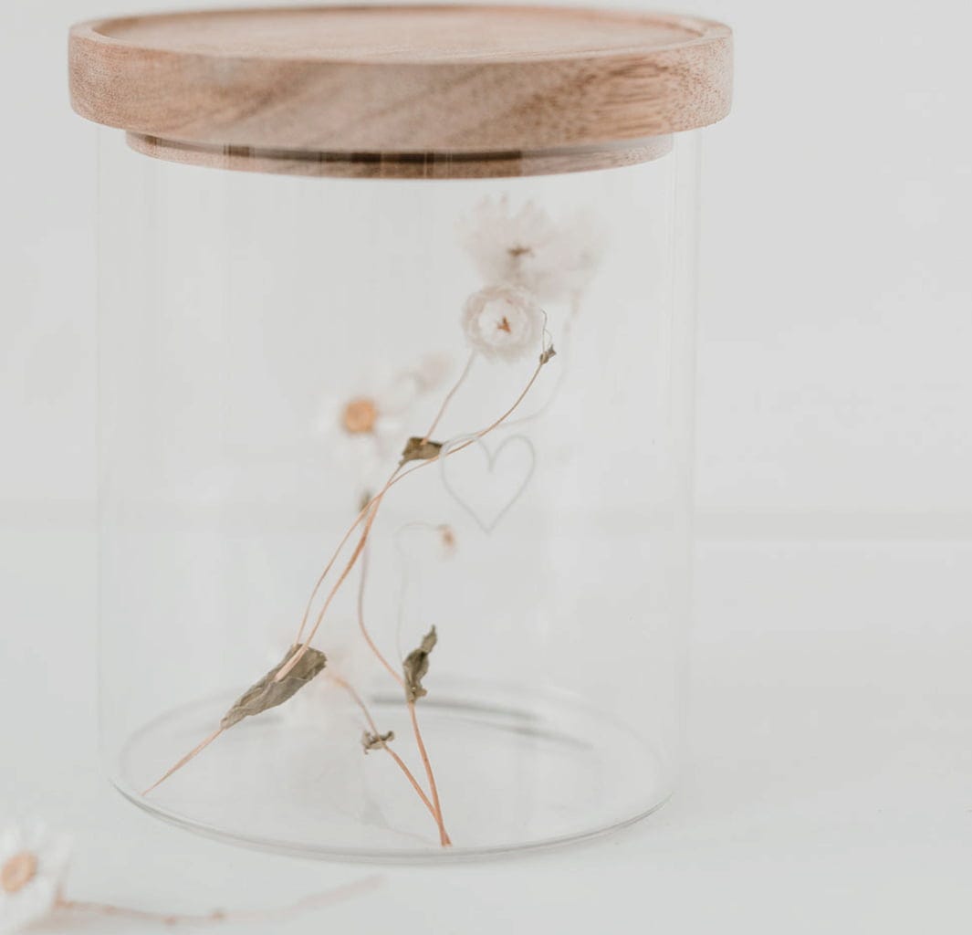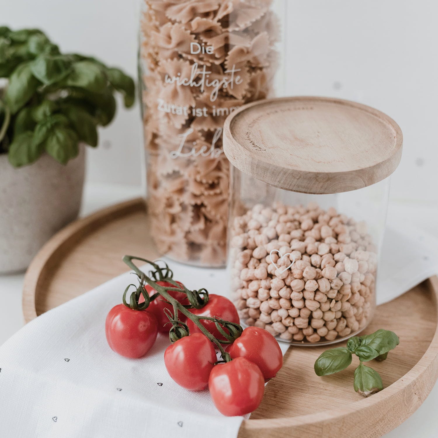Praktyczne i ładne przechowywanie w prosty sposób! Słoik wykonany jest ze szkła borokrzemowego o wyjątkowo wysokiej jakości wykończenia, które jest po prostu ozdobione małym sercem. Wraz z pokrywką z drewna akacjowego i wygrawerowanymi na niej słowami "Konfetti für die Seele", rozsiewa dużo dobrego humoru. Szczelny silikonowy pierścień przymocowany do pokrywki zapewnia wyjątkową świeżość zawartości.