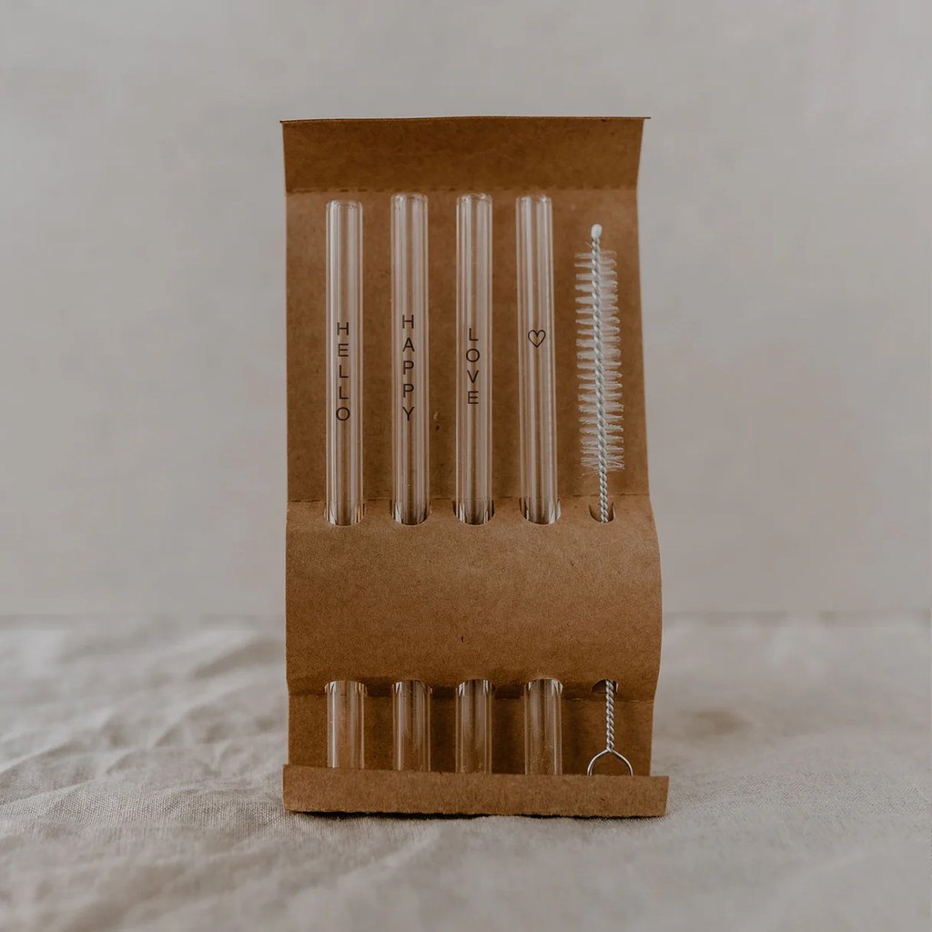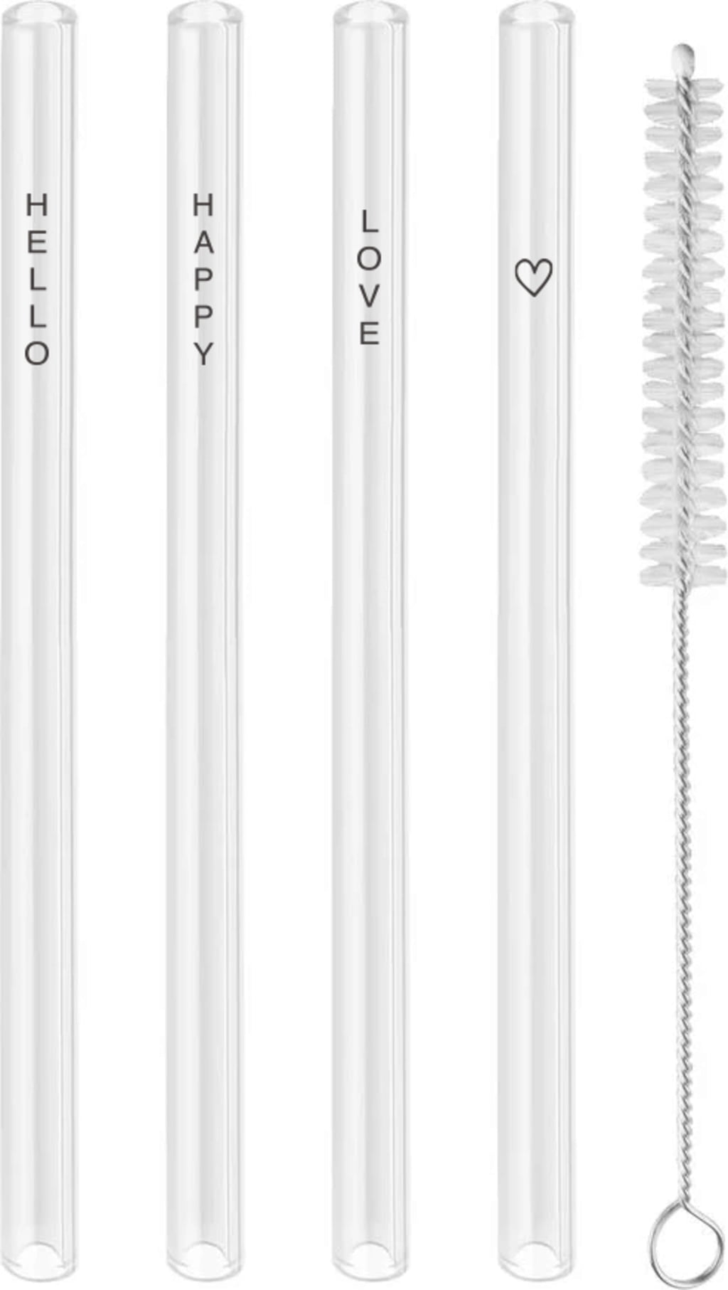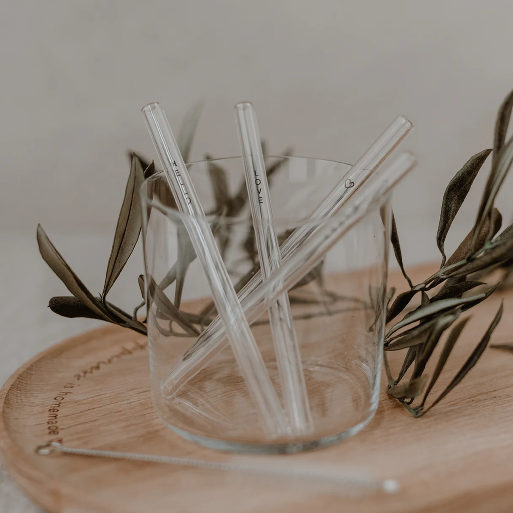 Żaroodporne słomki wykonane ze szkła borokrzemowego ze stylowymi czarnymi akcentami. Słomki można myć w zmywarce lub za pomocą dołączonej szczoteczki.