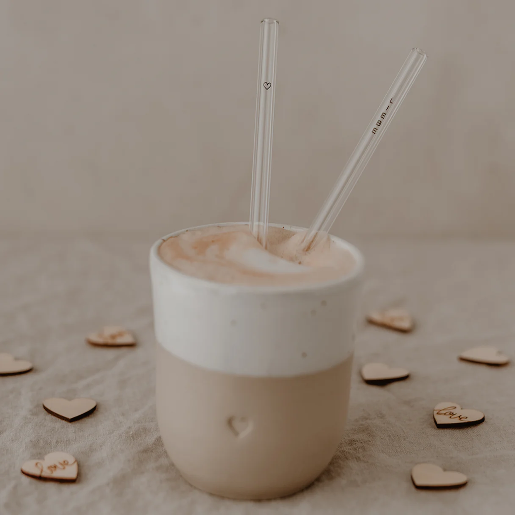 Odporne na wysoką temperaturę słomki ze szkła borokrzemowego ze stylowymi czarnymi akcentami. Słomki można czyścić w zmywarce lub za pomocą dołączonej szczoteczki.
