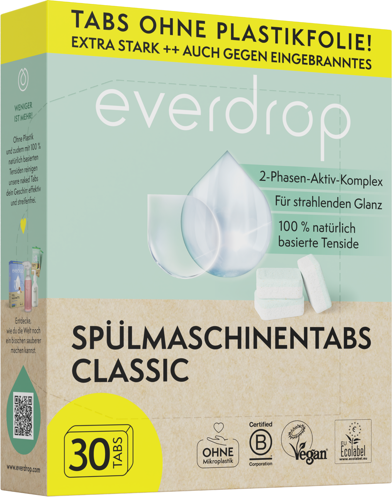 Dzięki wydajnym tabletkom do zmywarek everdrop nie tylko zapewnisz sobie lśniąco czyste naczynia, ale także unikniesz mnóstwa niepotrzebnego plastiku!