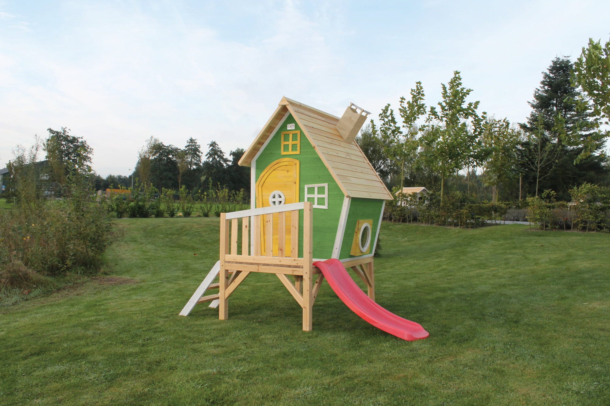 Zabawa w tym małym drewnianym domku EXIT Toys jest gwarantowana. Dzięki zabawnemu i pomysłowemu projektowi domek pasuje do każdego ogrodu i na pewno zmieni się w absolutną oazę zabaw dla każdego dziecka. Montaż jest szybki i łatwy dzięki wstępnie zmontowanym elementom. Zjeżdżalnia znajduje się w zestawie.