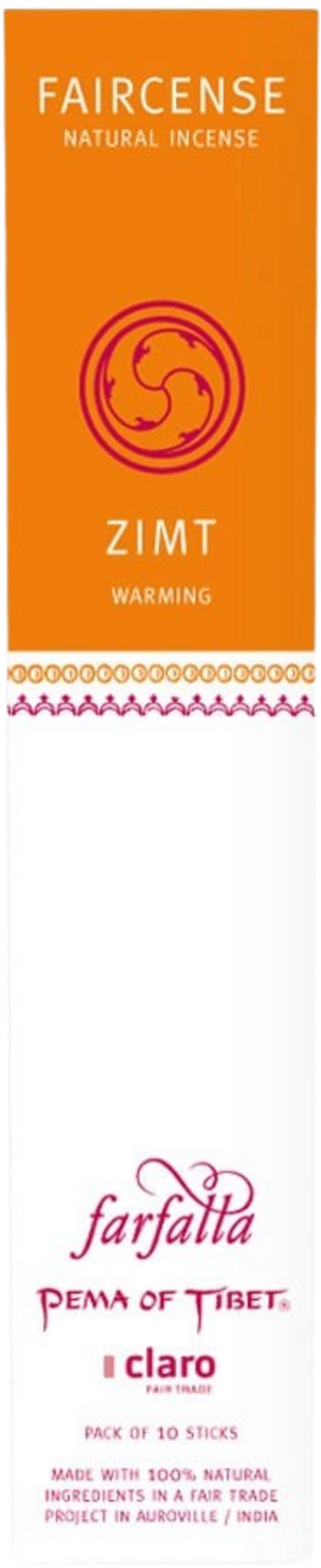 Wszystkie kadzidełka Faircense Fair Trade są wolne od sztucznych substancji zapachowych, związków piżma, szkodliwych materiałów spalania itp Stosowany papier jest ręcznie wykonywany w Indiach.