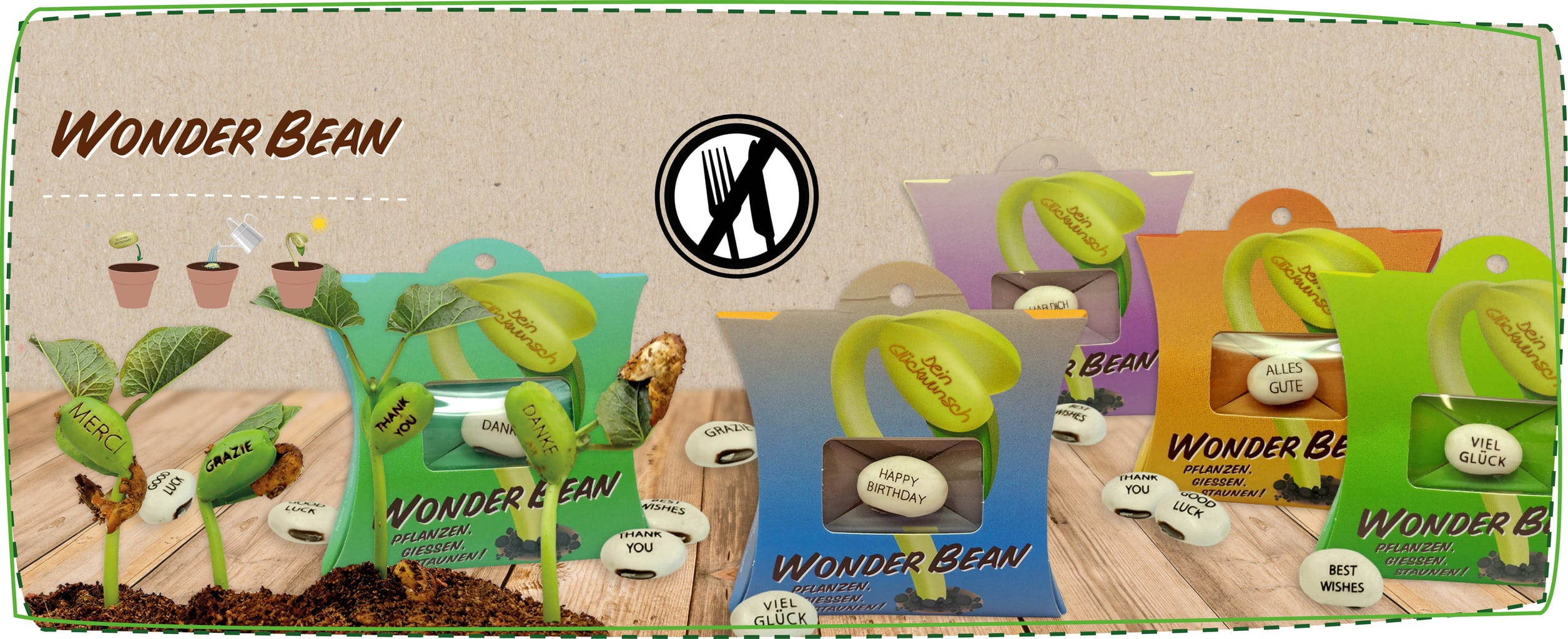 Roślina z wygrawerowanym napisem „Powodzenia” pokazuje swoje przesłanie już po ok. sześciu dniach. Ekscytujące oczekiwanie i radosne zdumienie gwarantowane.