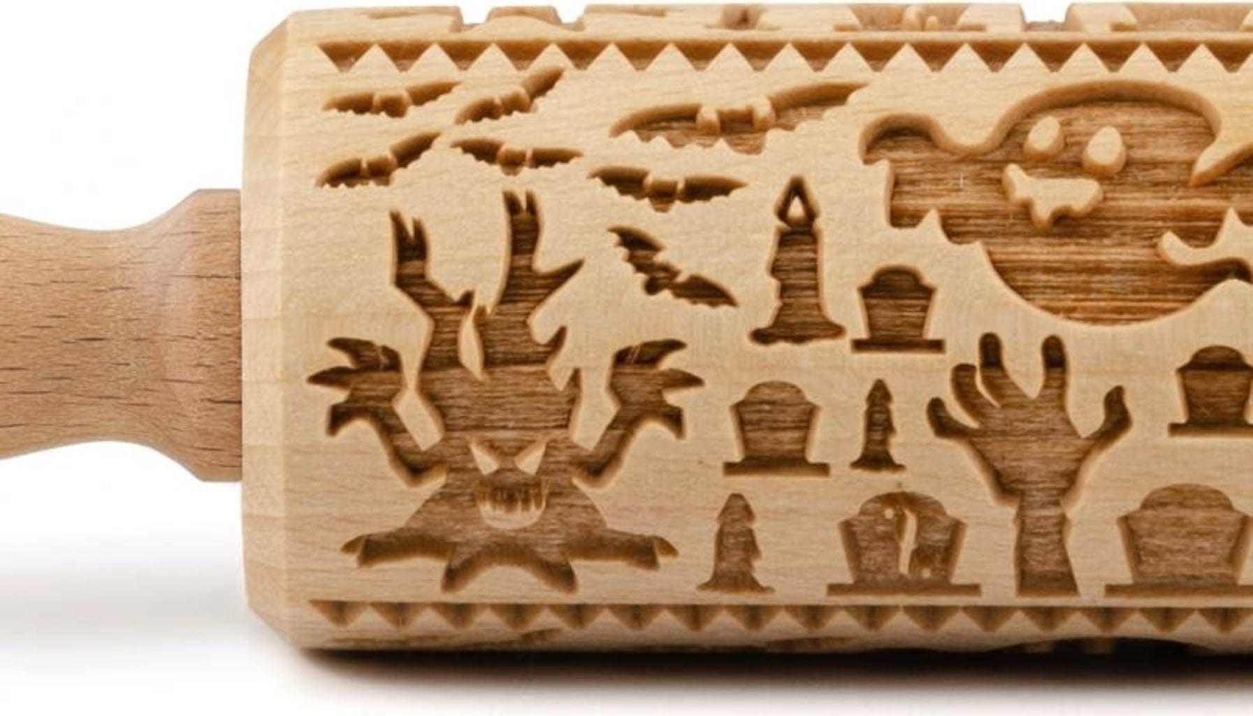 Ten pięknie wykonany wałek z motywem Halloween w mgnieniu oka zamienia rozwałkowane ciasto w udekorowane strasznymi duchami i postaciami ciasta i ciasteczka, które zachwycą nie tylko dzieci. Zastosowanie jest bardzo proste: rozwałkuj ciasto, a następnie pokrój lub wytnij wybrany przez Ciebie kształt, upiecz, gotowe!
