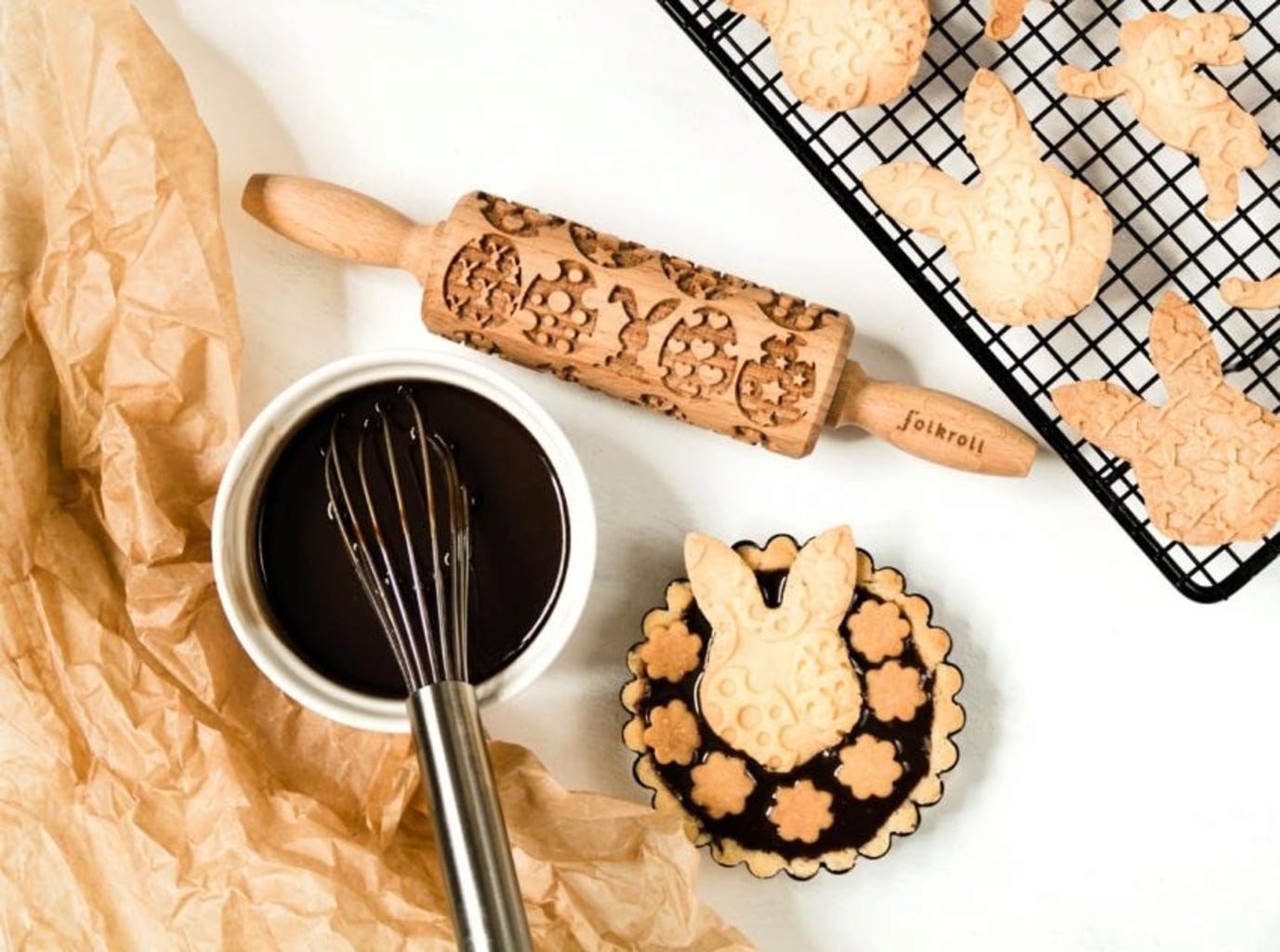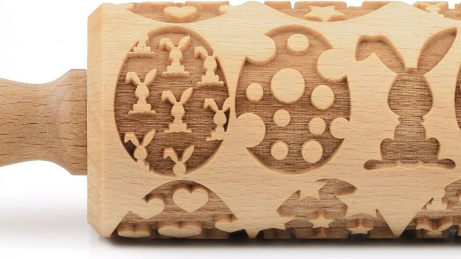 Ten pięknie wykonany wałek z motywem wielkanocnych pisanek i zajączków w mgnieniu oka zamienia rozwałkowane ciasto w pięknie udekorowane ciasta i ciasteczka. Zastosowanie jest bardzo proste: rozwałkuj ciasto, a następnie pokrój lub wytnij wybrany przez Ciebie kształt, upiecz, gotowe!